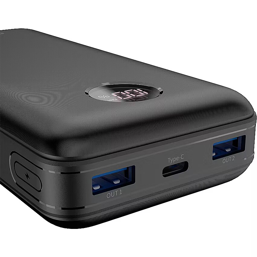 With two USB-A ports that support Quick Charge 3.0 technology, you can charge multiple devices simultaneously without worrying about charging speed. This makes the power bank an ideal companion for travel or longer outings. Intelligent Charging