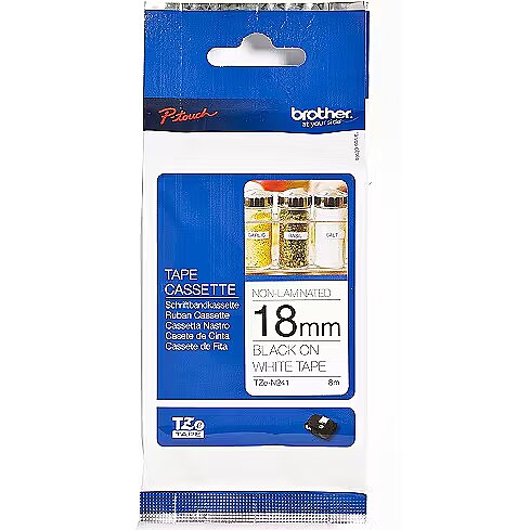 LongSummaryDescription - Brother TZE-N241. Tape type: TZ, Country of origin: China, Spare part retention: 5 year(s). Tape width: 1.8 cm, Tape length: 8 m, Width: 22 mm. Pallet gross height: 16.8 cm, Master (outer) cases per pallet: 30 pc(s), Layers per pallet: 6 pc(s). Tape size: 1.8 cm