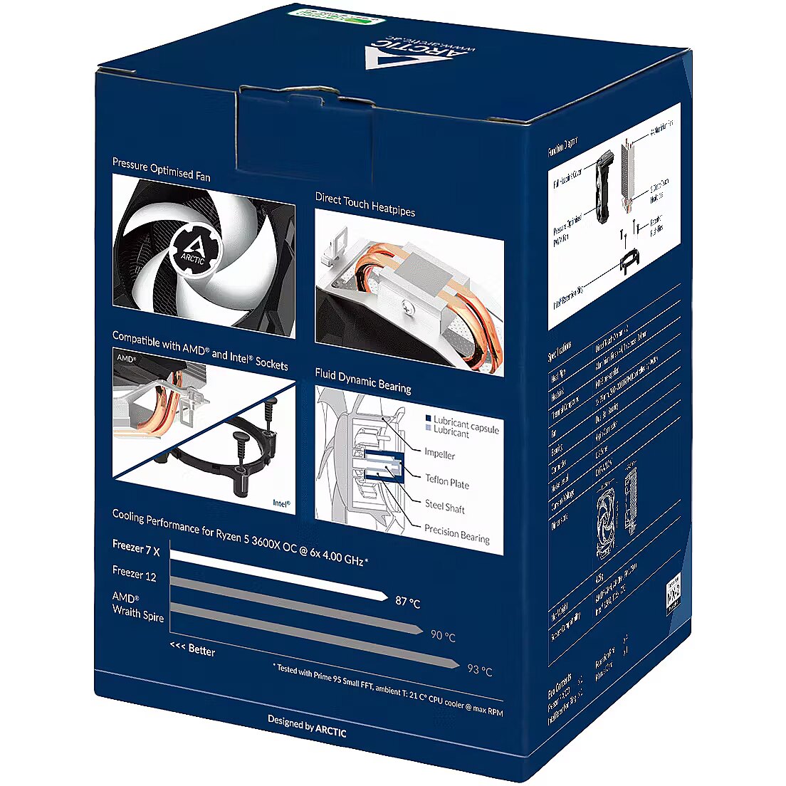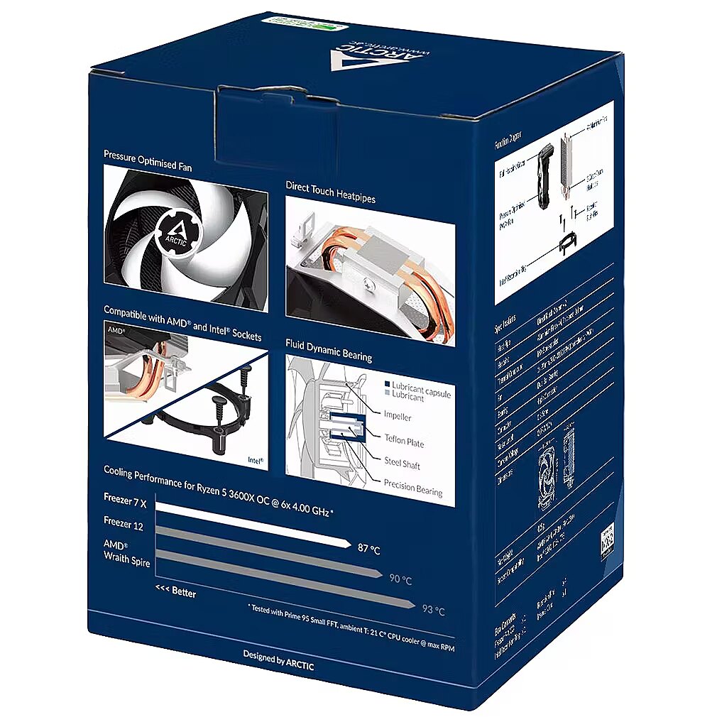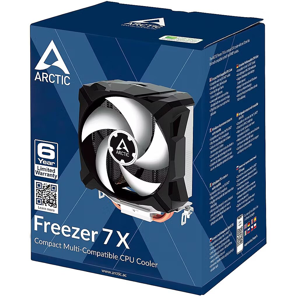 LongDesc - A worthy Freezer 7 Pro Successor:Better Price - Better PerformanceThe ARCTIC Freezer 7 X is a compact CPU cooler with one 92 mm fan. It is multi-compatible with common Intel® and AMD® sockets. It benefits from an improved heatsink design and a reworked heat pipe layout. In conjunction with the fan, which is optimised for high static pressure, ARCTIC has been able to significantly improve the cooling performance of Freezer 7 X.