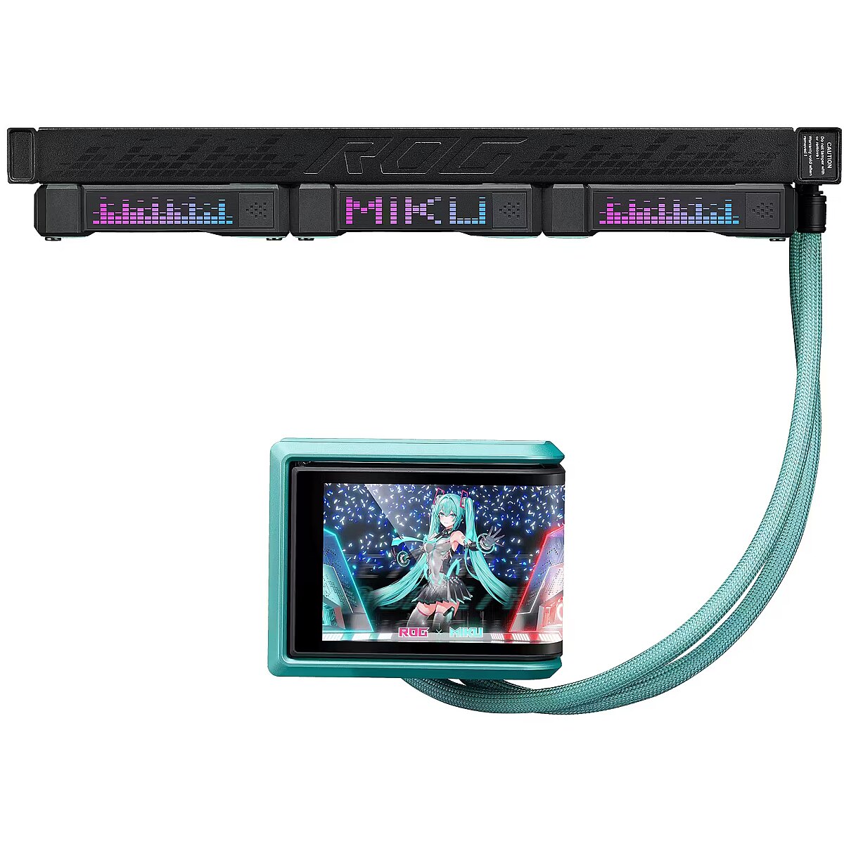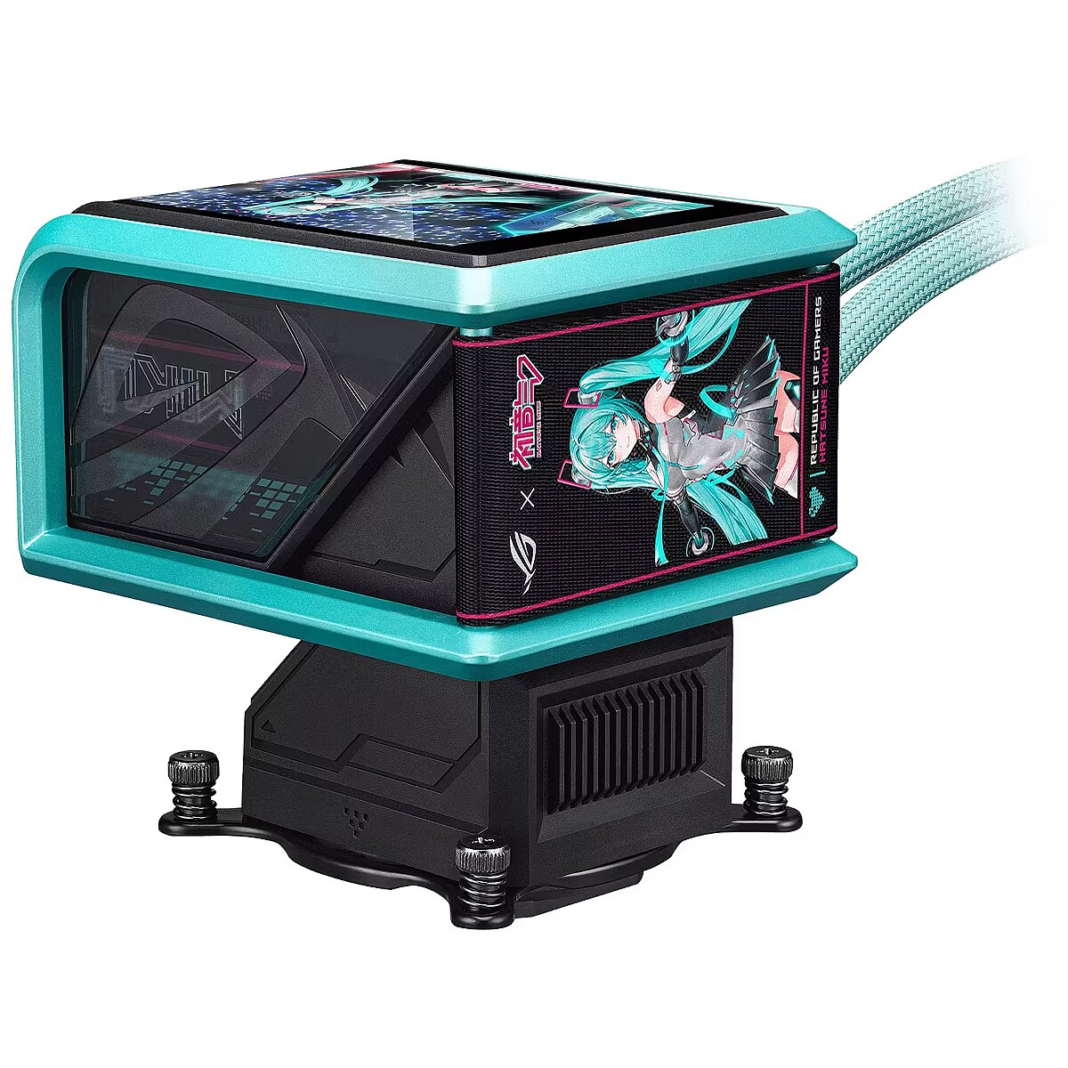 ShortSummaryDescription - ASUS ROG RYUO IV 360 ARGB Hatsune Miku Edition, universāls šķidruma dzesētājs, 12 cm, melns, tirkīza krāsā