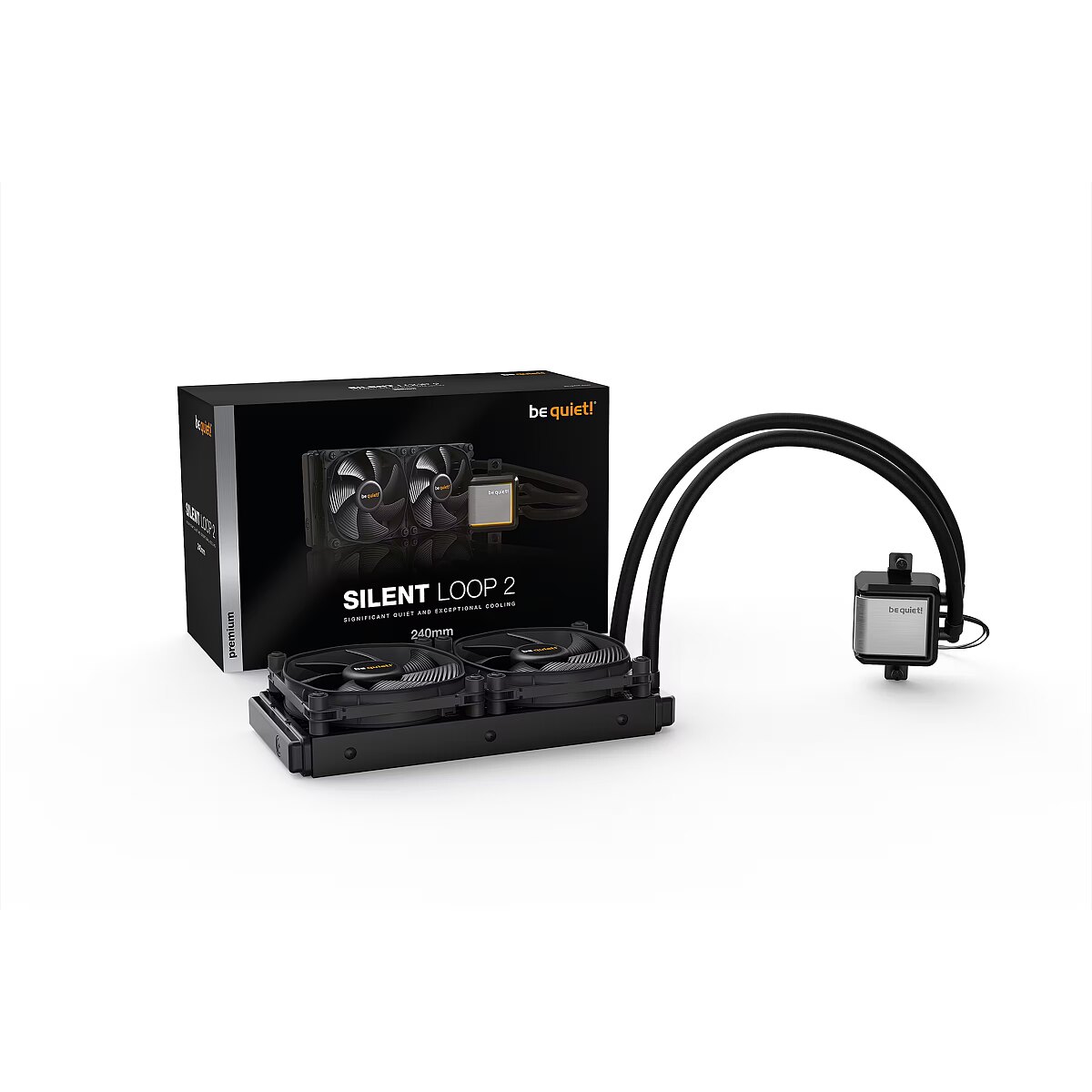 ShortSummaryDescription - be quiet! Silent Loop 2 240mm All In One CPU Water Cooling, 2 X 240mm PWM Fan, For Intel Socket: 1200 / 2066 / 115X / 2011(-3) square ILM; For AMD Socket: AMD: AM4 / AM3(+), All-in-one liquid cooler, 12 cm, Black