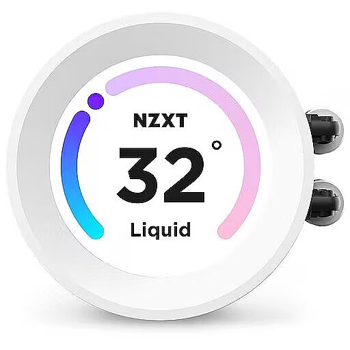Description - Get high-performance cooling, display a favorite animated GIF or static image, monitor real-time PC performance metrics, see music that's currently playing, stream browser content and more with NZXT CAM software. 2.36” diameter wide-angle LCD display with 640x640 resolution and 60 Hz refresh rate provides a sharp image from any viewing angle Screen supports the display of custom images, animated GIFs, and CAM system info with adjustable orientation Powerful Asetek pump provides optimal cooling and up to 2,800 RPM whisper-quiet operation Includes F140/F120 RGB Core fans Includes RGB Controller, RGB Fans, & USB Y-Cable Single breakout cable simplifies installation Rubber tubing is reinforced with nylon-braided sleeves to prevent leaks Control custom screen content, RGB, pump speed, and zero-noise fan curves with NZXT CAM software. CPU & Socket Intel:Intel Socket LGA 1851, 1700 & 1200/115X Intel Core i9 / Core i7 / Core i5 / Core i3 / Pentium / Celeron AMD:AMD Socket AM5, AM4 AMD Ryzen 9 / Ryzen 7 / Ryzen 5 / Ryzen 3