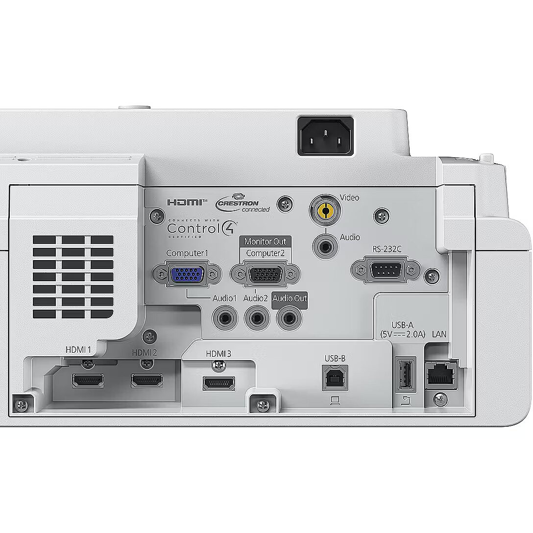 LongSummaryDescription - Epson EB-760Wi. Projector brightness: 4100 ANSI lumens, Projection technology: 3LCD, Projector native resolution: WXGA (1280x800). Light source type: Laser, Service life of light source: 20000 h, Service life of light source (economic mode): 30000 h. Focus: Manual, Fixed focal length: 3.7 mm, Zoom ratio: 1.35:1. Serial interface type: RS-232C, Service port type: USB Type-B. Ethernet LAN data rates: 10,100 Mbit/s, Wi-Fi standards: 802.11a, 802.11b, 802.11g, Wi-Fi 4 (802.11n), Wi-Fi 5 (802.11ac)