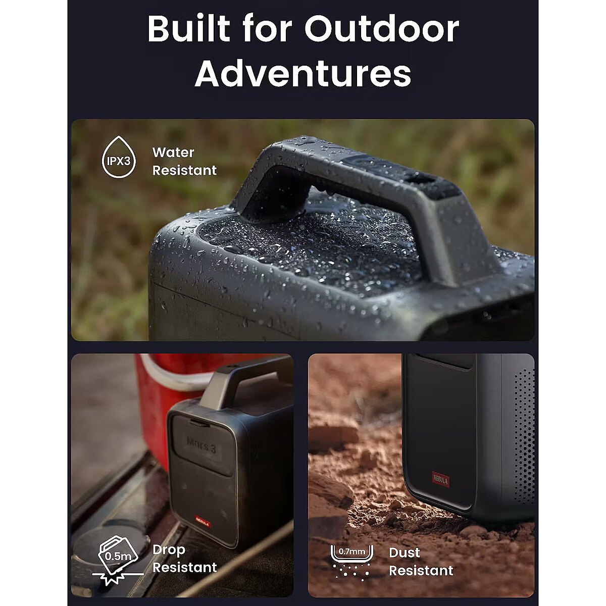 LongDesc - Immersive Outdoor Movies Projector: With 1000 ANSI Lumens brightness, a max screen size of 200 inches, and 1080p resolution, you can enjoy a cinema-level movie experience anywhere. Plus, our powerful AI automatically adjusts screen brightness for the best possible viewing experience. Compatible with Android TV 11.0 to expand your entertainment with 400,000+ movies and shows, and 7000+ apps. Also works with Chromecast and Google to make your movie night easier than ever.Enjoy 5 Hours of Playtime Anywhere: Our exclusive RoamPower™️ technology; supports a 185Wh capacity, which lets you use Mars 3 as a power bank to charge smart devices, enjoy 5 hours of movies, and listen to your favorite tunes for 15 hours.Built for the Outdoors: With IPX3 water resistance, 0.5 m drop resistance, 0.7 mm dust resistance, a built-in stand, a lens cover, a camping light, a power indicator, integrated controls, and a carry handle, you can keep watching, no matter what the great outdoors throws at you.Crisp and Immersive Audio: The built-in 40W speaker with Dolby Digital Plus delivers crisp and immersive outdoor audio to make movies sound amazing, and music sound crisp and clear with up to 15 hours of music playback.Easy Setup in Seconds: With Intelligent Environment Adaptation, a built-in intelligent sensor completes autofocus, keystone correction, and Screen Fit in just 3 seconds, making setup a breeze.What You Get: Nebula Mars 3 Projector, Remote, Power Adapter, Power Cord, 2x AAA Batteries, Quick Start Guide.