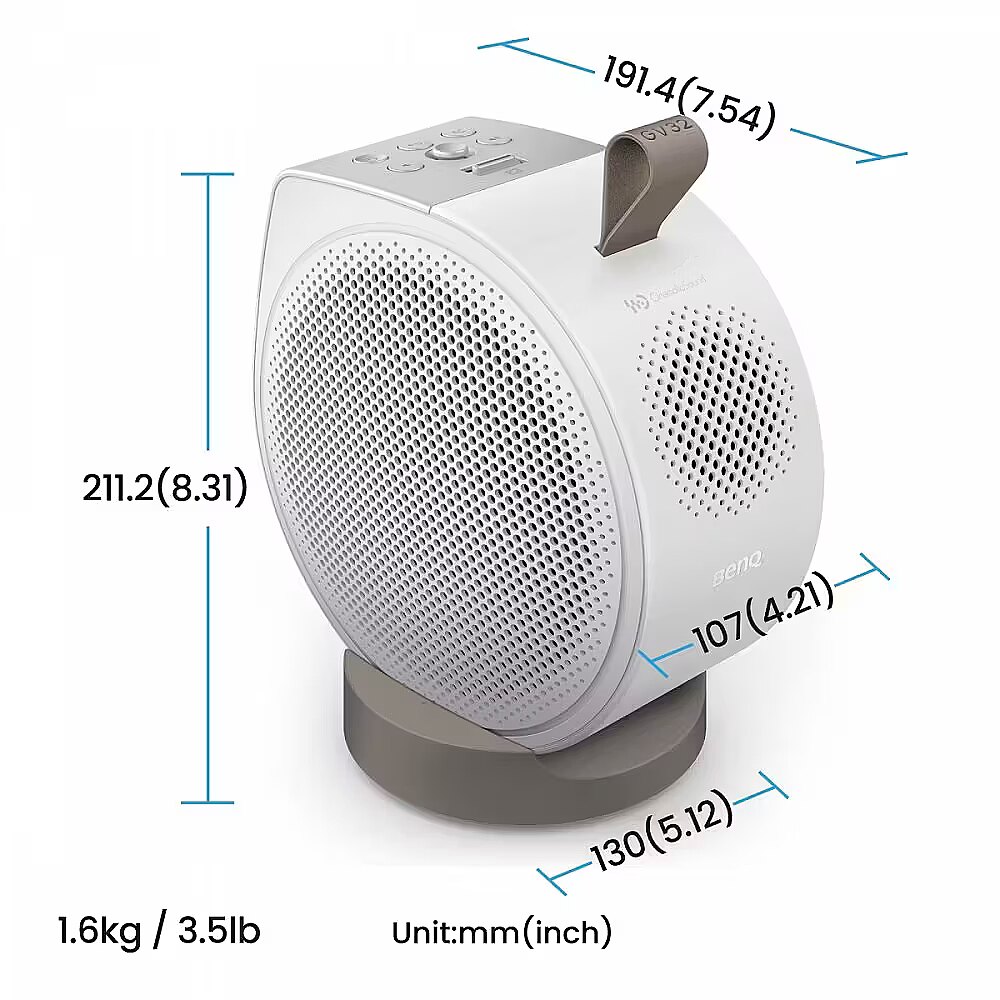 Apraksts - GV321080p 500lm BenQ griestu projektors - jūsu nesteidzīgais filmu vakars Atbrīvojiet leņķus GV32 elastīgā pamatnes konstrukcija, kas līdzinās integrētam statīvam, ir pielāgota projekcijai pie gultas, piedāvājot jums iespēju brīvi projicēt no jebkura vēlamā leņķa, atpūšoties ērtā gultas vietā. Izbaudiet uz priekšu vērstus attēlus no gultas Uzlieciet ideālai skatīšanai - GV32 regulējamo pamatni nolieciet, lai projicētu no naktsgaldiņa, nodrošinot optimālu vizuālo novietojumu bez nestabilitātes, vienlaikus saglabājot gultu neaizsprostotu. Varat brīvi apsēsties vai noliekties - bez piepūles pagrieziet projektora korpusu ar 135° vertikālo regulēšanu tieši no tā stabilās pamatnes, viegli pārejot no projekcijas pie sienas uz projekciju pie griestiem. Projecējiet no jebkuras puses - bez piepūles pagrieziet projektora korpusu ar 135° vertikālo regulēšanu tieši no tā stabilās pamatnes, viegli pārejot no projekcijas pie sienas uz projekciju pie griestiem. Atpūtieties jebkurā pozīcijā - GV32 ļauj jums atrast ideālo pozīciju ērtai skatīšanai - ekrāna leņķa rotācijas regulēšana līdz pat 360°. Viegli mainiet ekrāna izmērus GV32 intuitīvā tālummaiņas svira padara ekrāna izmēru pielāgošanu pavisam vienkāršu, ļaujot jums pielāgot attēlu, lai izvairītos no jebkādiem griestu šķēršļiem. Ekrāna pārvietošana atbilstoši jūsu ērtībām Izmantojiet tālvadības pulti, lai pārvietotu ekrānu vertikāli un horizontāli, nemainot savu pozīciju, un bez piepūles atrodiet optimālo skatīšanās leņķi. Miegs ar miega taimeri Iestatiet miega taimeri, lai skatītos bez raizēm, līdz mierīgi aizmigsiet. Acu aprūpes režīms Pielāgotais nakts attēla maiņas režīms automātiski pielāgo displeja krāsas, lai samazinātu acu slodzi, palīdzot jums dabiski aizmigt. Iespaidīgs skaņu ieraksts pirms gulētiešanas Atvadieties no zemfrekvenču skaņu bloķēšanas, kas raksturīga augšupvērstiem projektoriem, izmantojot griestu kinozāles skaņas režīmu. Mūsu rūpīgi izstrādātie audio iestatījumi nodrošina optimālu skaņas kvalitāti neatkarīgi no tā, vai esat guļus vai sēdus. Pilnīgi jauna izklaide Google TV piedāvā personalizētus ieteikumus un netraucētu piekļuvi straumēšanas pakalpojumiem, piemēram, Netflix, Prime Video, YouTube, Disney+ un citiem, kā arī Google Assistant papildu ērtībai. Spilgtāks, spilgtāks vizuālais attēls Izbaudiet satriecošu vizuālo kvalitāti ar 95% Rec. 709 krāsu precizitāti un 500 ANSI lūmenu spilgtumu, ko nodrošina BenQ CinematicColor tehnoloģija optimizētam HDR10 un HLG saturam. Bagātīgs audio, kompakts dizains Izbaudiet aizraujošu skaņu ar GV32 iebūvēto 2,1 kanāla 18 W skaļruņu sistēmu, kas aprīkota ar īpašu zemo frekvenču sistēmu kinematogrāfiskai audio pieredzei. Viegli straumējiet mūziku ar Bluetooth Pārvērtiet savu projektoru par Bluetooth skaļruni - ideāli piemērots, lai atvēsinātos, dejotu vai vibrētu, klausoties savu iecienītāko atskaņošanas sarakstu. SmartRemote BenQ projektora lietojumprogramma Izlaidiet tālvadības pulti un pārņemiet kontroli ar tālruni. Pēc savienošanas pārī vienkārši ieslēdziet ierīci, lai palaistu lietotnes, regulētu spilgtumu vai trapeces leņķi un daudz ko citu. Pateicoties stabilam tiešajam savienojumam, nav nepieciešams Wi-Fi, karstie punkti vai sarežģījumi. Google palīgs, tagad mūsu lietotnē Google palīgs, kas ir pieejams tikai lietotnē, palīdz jums atrast kaut ko lielisku, ko skatīties, izmantojot personalizētus ieteikumus. Straumēšanas karstā taustiņa Pārejiet uz savu iecienītāko izklaidi ar vienu pieskārienu, netraucēti pārslēdzoties starp straumēšanas programmām. Vadība ar saīsnēm Ātri noregulējiet spilgtumu, automātisko izlīdzināšanu vai iestatiet miega taimeri, vienkārši pieskaroties lietotnei. Viegla vadība un uzlāde Atklājiet GV32 bezšuvju vadības un uzlādes iespējas, kas nodrošina nepārspējamu ērtību un daudzpusību jūsu izklaidei gan telpās, gan ārpus tām. Daudzpusīga savienojamība GV32 USB-C ports nodrošina savietojamību ar plašu ierīču un barošanas avotu klāstu. Lielo ekrānu ņemiet līdzi ārā Pievienojiet īpaši izstrādāto pārnēsāšanas somu (nopērkama atsevišķi) un ņemiet projektoru līdzi, lai kur jūs aizvestu dzīve - drošu, kompaktu un gatavu doties ceļā. Pieslēdziet USB-C barošanas banku (60 W vai jaudīgāku), lai uzreiz nodrošinātu tūlītēju strāvas padevi un liela ekrāna izklaidi jebkurā vietā - no pagalma atpūtas vietas līdz piedzīvojumiem brīvā dabā. Projektori jebkuram dzīvesveidam Atklājiet vēl vairāk veidu, kā atpūsties - ar īpašiem mirkļiem, kas radīti tieši jums. Iegūstiet savu 120 collu kinozāli Ar GV32 radiet personīgo kino pieredzi no astoņu pēdu attāluma, piedāvājot ekrāna izmērus no 30 līdz 120 collām.
