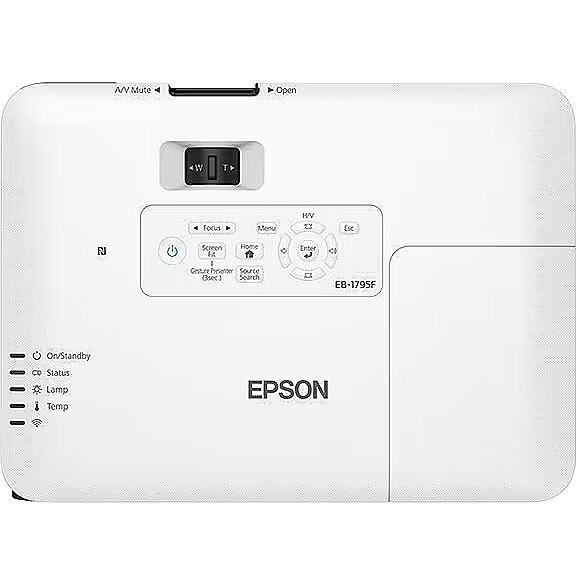 LongSummaryDescription - Epson EB-1795F. Projektora spilgtums: Projekcijas tehnoloģija: 3LCD, Projektora dabiskā izšķirtspēja: 3200 ANSI lūmeni: 1080p (1920x1080). Gaismas avota tips: Gaismas avota darbmūžs: Gaismas avota kalpošanas laiks (ekonomiskajā režīmā): 4000 h, Gaismas avota kalpošanas laiks (ekonomiskajā režīmā): 7000 h. Fokuss: Fokuss: manuāls, fokusa attāluma diapazons: 13,52 - 16,22 mm, Diafragmas diapazons (F-F): 1.58 - 1.7. Atbalstītās grafikas izšķirtspējas: Atbalstītie video režīmi: 1080p, Video apstrāde: 1920 x 1080 (HD 1080), Video apstrāde: 10 bitu. Wi-Fi standarti: 802.11b, 802.11g, Wi-Fi 4 (802.11n).