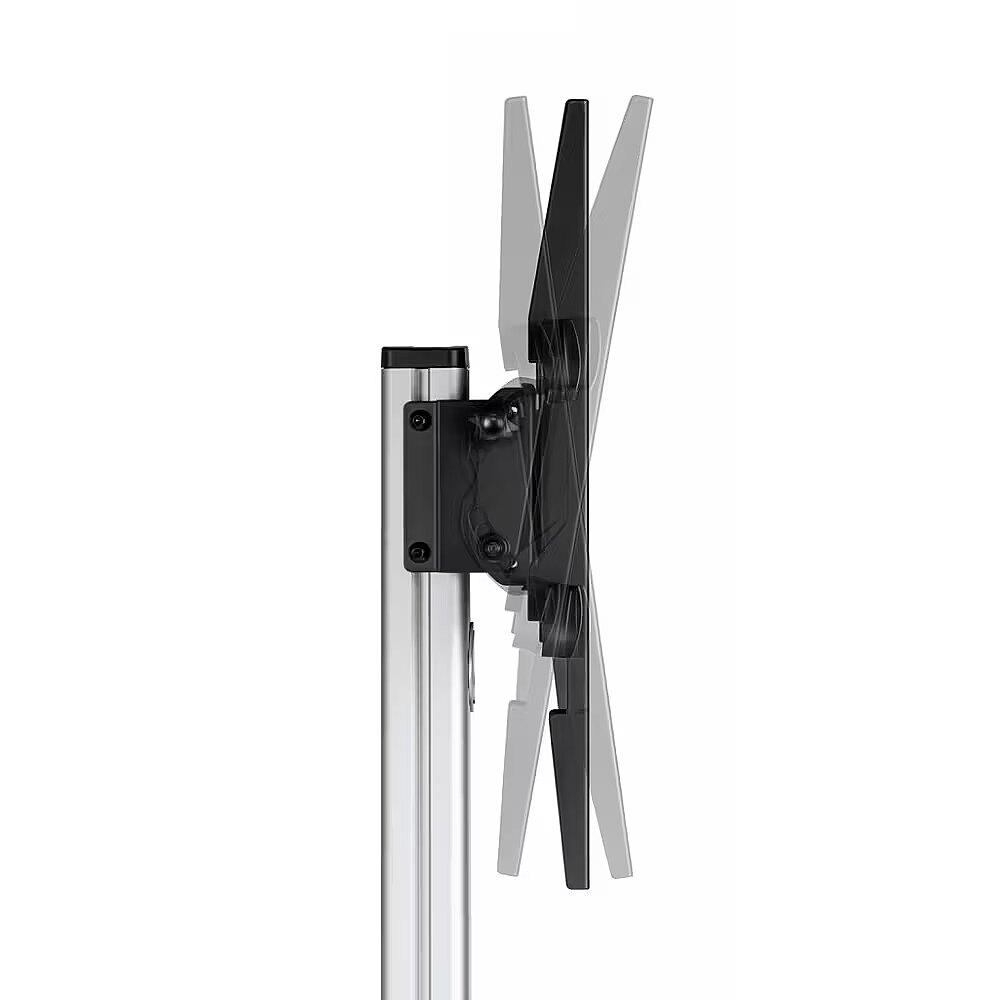 Description - Mobile stand + TV mount 37-86" 50KG S-11-AL: - handle rotation adjustment: yes - handle tilt adjustment: yes - maximum table load - 50kg - cable hiding system: yes - wheels for movement with locking option - Tool-free TILT system allows the screen to be rotated from horizontal to portrait position - Height adjustment of the main column in the range of 400mm