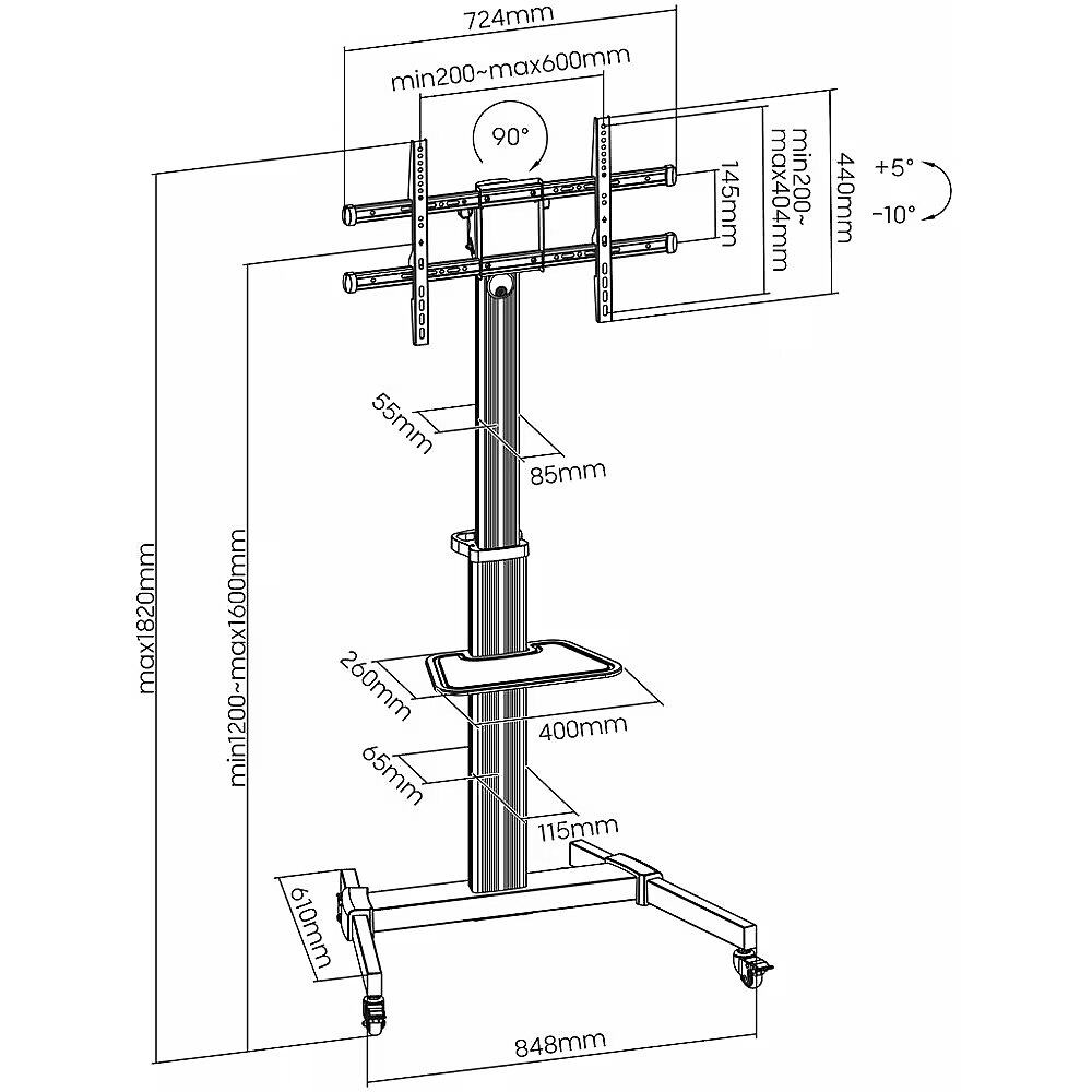 ART MOBILE STAND + MOUNT FOR TV 37-86inch 50KG S-11-AL Vesa 600x400