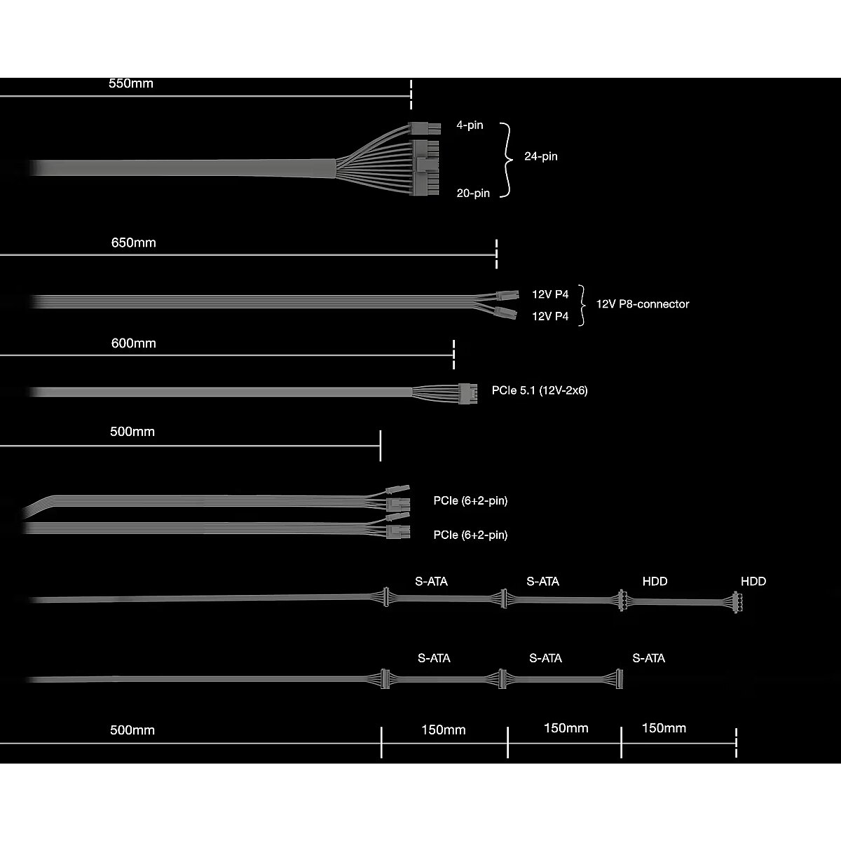 Šim barošanas blokam ir pilnībā modulāri kabeļi (Fully-modular) – visus komplektā esošos kabeļus iespējams pievienot un atvienot pēc vajadzības, samazinot mudžekli un uzlabojot ventilāciju. Tas noderēs tiem, kam ir daļēji caurspīdīgs datora korpuss un īpaši svarīgs estētiskais faktors.