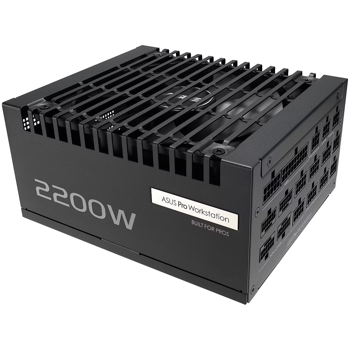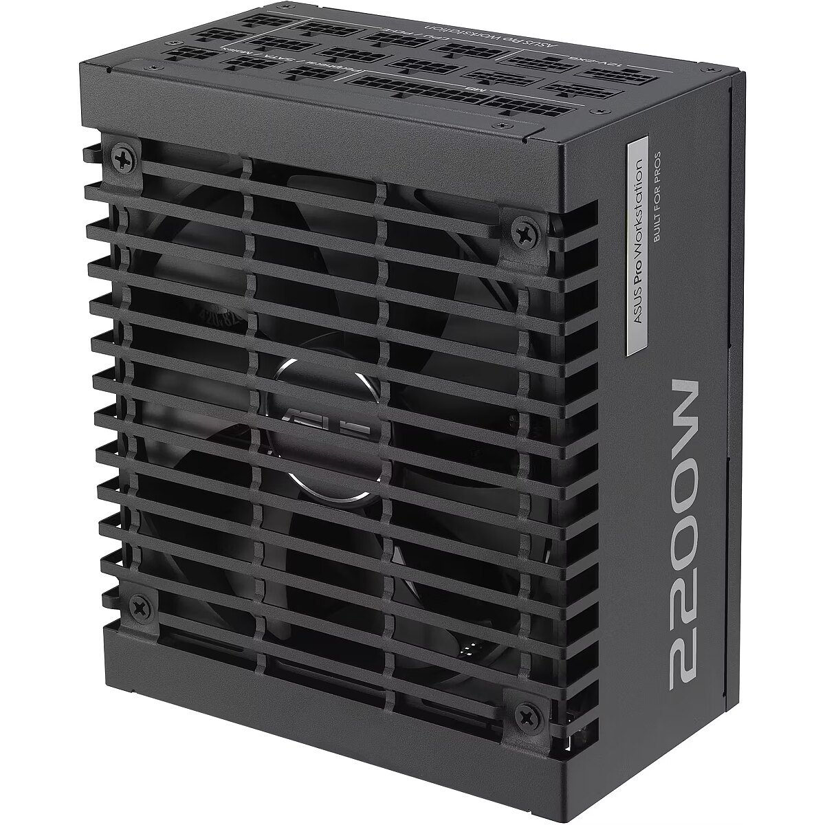 LongDesc - ASUS Pro WS 2200W Platinum PSU delivers exceptional voltage stability and advanced power delivery for professionals, supporting up to four graphics cards to meet the demanding AI workloads.The ASUS Pro WS 2200W Platinum PSU is engineered to support up to four GeForce RTX™ 5080 graphics cards. It also features 80 PLUS Platinum certification, high-performance copper pins, dual-ball fan bearings, etched cables, rock-solid voltage stability and advanced power delivery, making it an ideal choice for AI solutions, deep learning and IT management.ENGINEERINGHeavy-Duty PowerDesigned to reliably deliver the thousands of watts necessary to power up to four NVIDIA® GeForce RTX™ 5080 graphics cards, the ASUS Pro WS 2200W Platinum enables breakthrough performance that meets the needs of demanding AI workloads.Gold-Plated High-Performance Copper PinsThe copper pins of the PCIe® connectors in this PSU have been upgraded with gold plating to help ensure cooler operation and improved power delivery efficiency. This plating translates to a significant reduction in normal 12V-2x6 connector temperatures (up to 10°C), promoting optimal performance and stability for even the most demanding graphics cards. Furthermore, the improved contact between socket pins and connectors reduces resistance and improves durability for connector insertion and removal, ensuring reliable cooling performance.Protective PCB CoatingAll wrapped upA protective conformal coating envelops the circuit board to help protect against short-circuits caused by moisture, dust or debris. This added layer of protection enhances durability and stability, ensuring reliable performance throughout the PSU’s lifespan.ATX 3.1 CompatibleATX 3.1 ushers in tighter voltage and current regulation for next-gen hardware ― and the ASUS Pro WS series is ahead of the curve with full compliance. The 16-pin PCIe cables bundled with the PSU deliver up to 600 watts to PCIe 5.1 graphics cards, readying your build for the graphics cards of tomorrow.80 Plus Platinum The ASUS Pro WS Platinum uses low-ESR Japanese server-grade capacitors to ensure efficient operation. This upgrade enables an 80 PLUS Platinum certification, which guarantees 89% efficiency at 100% load and 92% efficiency at 50% load. This increased efficiency results in less heat, reduced fan noise and increased reliability.COOLINGExtruded Aluminum Heatsinks The integrated heatsinks have up to twice the volume of standard designs, to dissipate heat more effectively and help extend component lifespan. Dual-Ball Fan BearingsUp to twice the lifespanDual-ball bearings boast a remarkable lifespan of up to 80,000 hours, lasting up to twice as long as sleeve bearings and exceeding even fluid dynamic bearings. This helps ensure long-lasting, reliable cooling with minimal noise.EXPERIENCEEtched CablesMade using pliable premium materials, these etched cables are easily flexible during installation, and they operate at temperatures 50°C lower than the safety limit when routed for cable management. The cables also meet the rigorous standards of the UL1581 flame test and UL758 certification, helping to ensure a smooth PC DIY experience and exceptional safety.DIY-Friendly CPU/PCIe Power ConnectorEngineered for a streamlined build experience, the power cable features a distinct clip between the 4+4 pin connectors and a unique color scheme for easy identification during installation. The integrated clip helps ensure a secure and effortless connection to the motherboard's CPU power connector, while the dual-color PCIe 16-pin connector enhances visibility and simplifies GPU power connections.Compact SizeThe compact 175mm length allows flexible installation in a wide range of PC cases, making it easier to maintain clean cable management and optimized airflow.10-year WarrantyEnjoy the peace of mind that the reliability of the ASUS Pro WS Platinum offers, backed by a 10-year warranty.