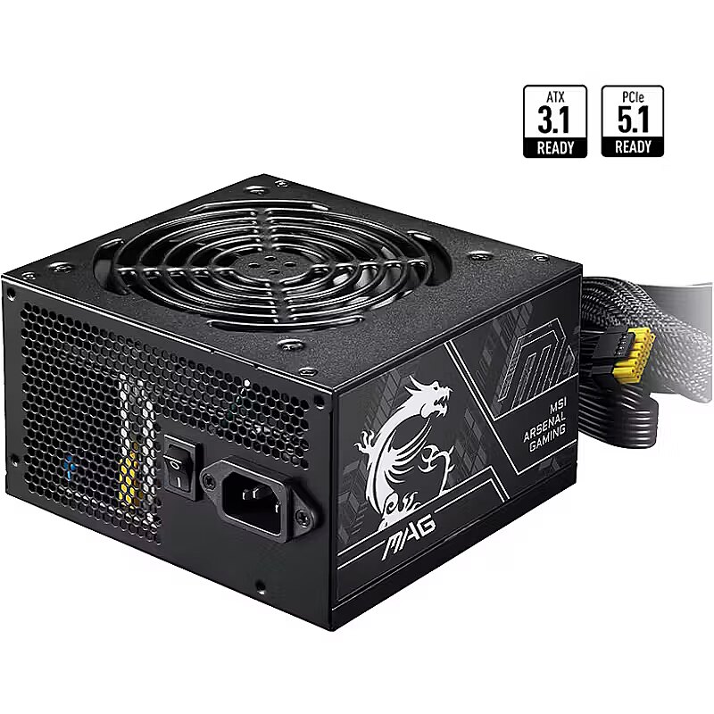 LongDesc - MSI's mainstream MAG series epitomizes stability and durability and is built to withstand the most intense gaming sessions. The entire lineup features robust construction with metallic-like hardness and excellent heat dissipation, ensuring stability for all critical gaming components.80 PLUS BRONZE CERTIFIEDThe efficiency of your power supply directly influences your system’s performance and your power consumption. The 80 PLUS BRONZE certification promises lower energy consumption and higher efficiency.ATX 3.1 READYIt has an output port that is compliant with PCIe CEM 5.1 and Intel PSDG (Power Supply Design Guide)ATX 3.1, also this power supply can hold up to 2x total power excursion and 3x GPU power excursion.Dual-color 12V-2x6 cableThe 12V-2x6 cable’s connector color has been changed to yellow so that users can easily see if the connector has been plugged in properly.Offer the CPU sufficient powerThis power supply features dual 4+4-pin PCIe power connectors, providing ample 12V power to support high-performance CPUs.POWER AT YOUR SIDEThe power supply is built with DC-to-DC construction, ensuring top-tier efficiency and unwavering voltage stability for your system.SET FREE FOR THE +12V POWER OUTPUTThe latest CPUs and graphics cards demand more power, and a single +12V rail PSU provides an ideal combination of simplicity, robust power delivery.Alloy Copper Connector TerminalsThe cable connectors are made of copper alloy terminals so that thepower supply will be safer when there is a higher surge in current.PROTECTION MECHANISMSoperate safely and stably at all times, this power supply comes with a number of protection mechanisms to give you the best peace of mind.connectorsThis non-modular power supply equipped with black flat cables, making cable management.