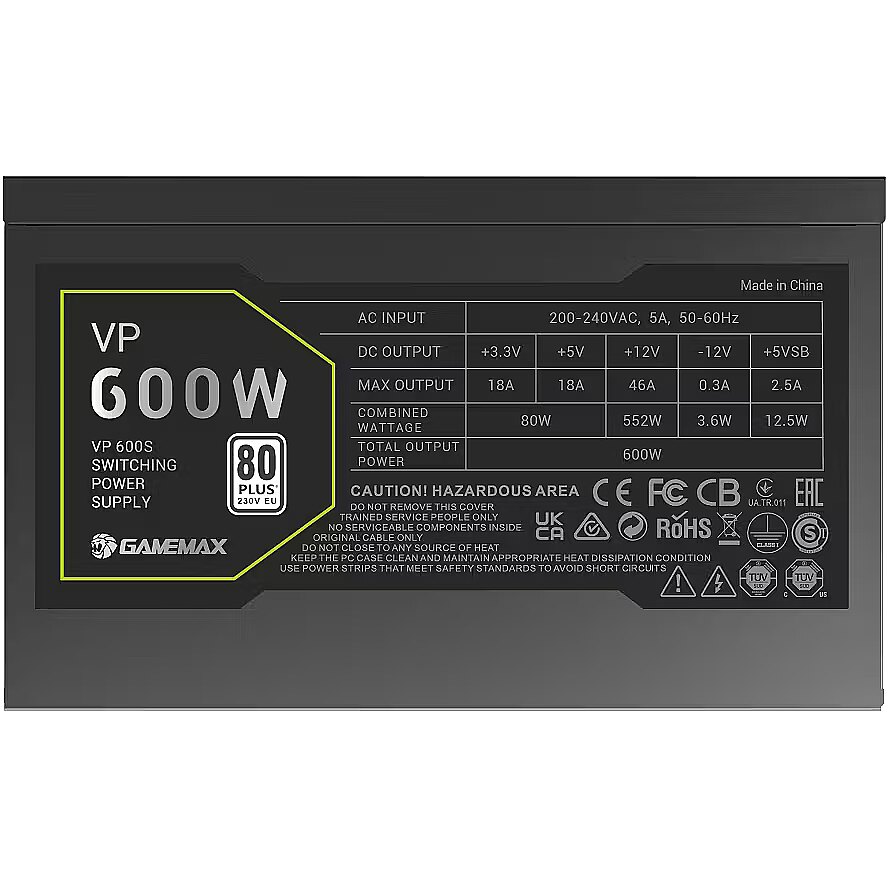 Name - Gamemax PSU | VP 600S | 600 W | Bronze | Non-Modular