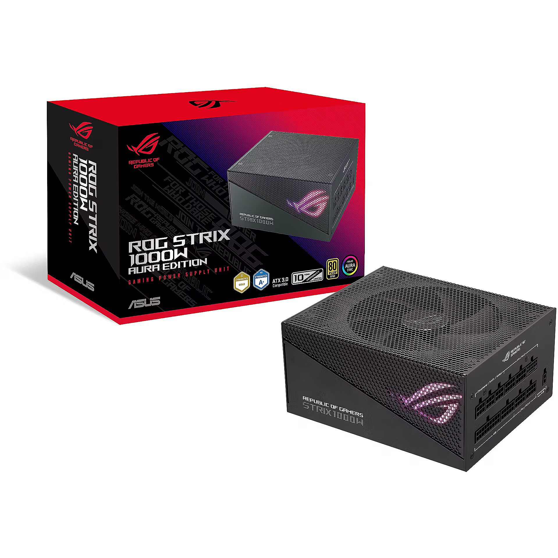 LongDesc - Exude PowerThe ROG Strix 1000W Gold Aura combines premium components, superior cooling and captivating RGB illumination to create a formidable force. With huge ROG heatsinks, a high-efficiency Axial-tech fan, and a striking aluminum finish, it’s a pumped-and-primed PSU powerhouse for your next gaming rig.COOLINGAluminum CaseBuilt to run coolThe ROG Strix 1000W Gold Aura Edition is encased in a strong, sleek aluminum chassis that also acts as a heatsink for the internal power transformer, further helping to reduce temperatures and minimize noise.ROG HeatsinksCool under pressureROG heatsinks facilitate lower temperatures, longer component lifespan, and extended 0dB operation.Axial-tech Fan DesignBetter, faster, strongerAxial-tech fan design features a smaller fan hub that facilitates longer blades and a barrier ring that increases downward air pressure. For ROG Strix Aura Edition PSUs, we've scaled that design to 135mm so it keeps things cool at low RPMs while producing less noise.Dual Ball Fan Bearings2x longer lifespanThe fan impeller spins on a dual ball bearing setup that will last up to twice as long as a sleeve bearing design.0dB TechnologyQuiet intelligenceTo reduce noise output, the PWM-controlled fan shuts off entirely when the PSU load is 60% or below.ENGINEERING80 Plus Gold CertificationHeart of goldTop-end Japanese capacitors ensure efficient operation and have helped the ROG Strix Aura Edition PSUs earn an 80 PLUS Gold certification. The increased efficiency also results in less heat, reducing noise and increasing reliability.Lambda A++ CertificationEffortlessly quietOn average, ROG Strix 1000W Gold Aura Edition emits less than 15 dB of noise – earning a coveted Cybenetics Lambda A++ certification.ATX 3.0 CompatibleStep into the futureThe latest power specification updates have landed. ATX 3.0 ushers in tighter voltage and current regulation guidelines for next-gen hardware - and ROG Strix Aura Edition steps ahead of the curve by being fully compliant. A 16-pin PCIe cable ripe for piping up to 600W of power to PCIe Gen 5.0 graphics cards is bundled with the PSU, readying your build for the next-gen.EXPERIENCEAura SyncOutshine the competitionAddressable RGB lighting is built right in to the ROG Strix 1000W Gold Aura Edition, so it’s all set to integrate with the Aura Sync illumination ecosystem – adding aesthetic style to raw power.*If the connector cable is not used, the default color effect is rainbow.*To enjoy Aura Sync, you’ll need an Aura Sync-compatible ASUS or ROG motherboard. Similarly, the Smart Mode lighting effect, which reflects GPU temperature, requires use of a compatible ASUS or ROG graphics card.10-year WarrantyA decade of powerWe're so confident about the reliability of the ROG Strix 1000W Gold Aura Edition that we back it with a 10-year worldwide warranty.*Core product operation is guaranteed for 10 years. The RGB LEDs are subject to a 3-year warranty.