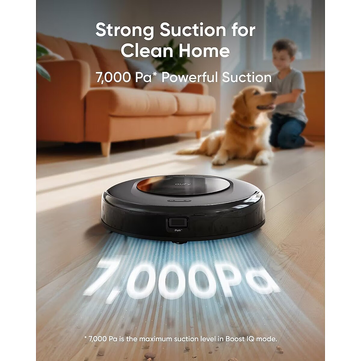 LongDesc - - Stacija "viss vienā": eufy robotizētais putekļsūcējs Omni C20 piedāvā pilnībā automatizētu tīrīšanu ar tādām funkcijām kā automātiska iztukšošana, mazgāšana, žāvēšana un ūdens uzpildīšana. Stacija žāvē mopu ar istabas temperatūras gaisu, un tai ir caurspīdīgas ūdens tvertnes, kas ļauj viegli uzraudzīt ūdens līmeni, tās neatverot. Šī brīvroku sistēma nodrošina vieglu apkopi bez piepūles.- 7000 Pa spēcīga sūkšana: - ( Piezīme: veiktspēja var atšķirties atkarībā no grīdas tipa un putekļu līmeņa.)- Mop Master™ tehnoloģija: Ar 180 apgriezieniem minūtē un 6 N spiedienu Omni C20 bez piepūles noņem izturīgus traipus. Tam ir divi slaucīšanas un slaucīšanas moduļi, kas ļauj vienlaicīgi tīrīt, izmantojot lietotni, un palielina efektivitāti.- 3,35 collu īpaši plāns korpuss: īpaši plāns 3,35 collu korpuss ļauj C20 sasniegt šauras vietas, piemēram, zem rakstāmgalda un gultas, nodrošinot rūpīgu tīrīšanu grūti aizsniedzamās vietās un samazinot manuālo tīrīšanu zema profila mēbeļu vietās.- Pro-Detangle Comb™: Pro-Detangle Comb™ slotiņa™ pagriežas uz leju, lai atbrīvotu un noņemtu sapinušos matus no birstes, tādējādi nodrošinot optimālu veiktspēju un samazinot apkopes laiku.