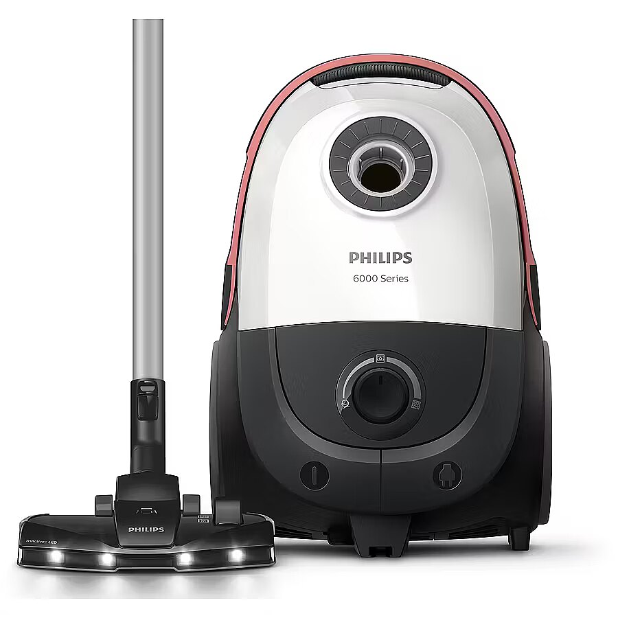 MediumDescription EN - Clean your home thoroughly with the Philips 6000 series bagged vacuum cleaner. AirflowMax technology ensures sustained high suction power, while the TriActive+LED nozzle reveals hidden dust, leaving no spot untouched. • 900 W power and 99.9% dust removal