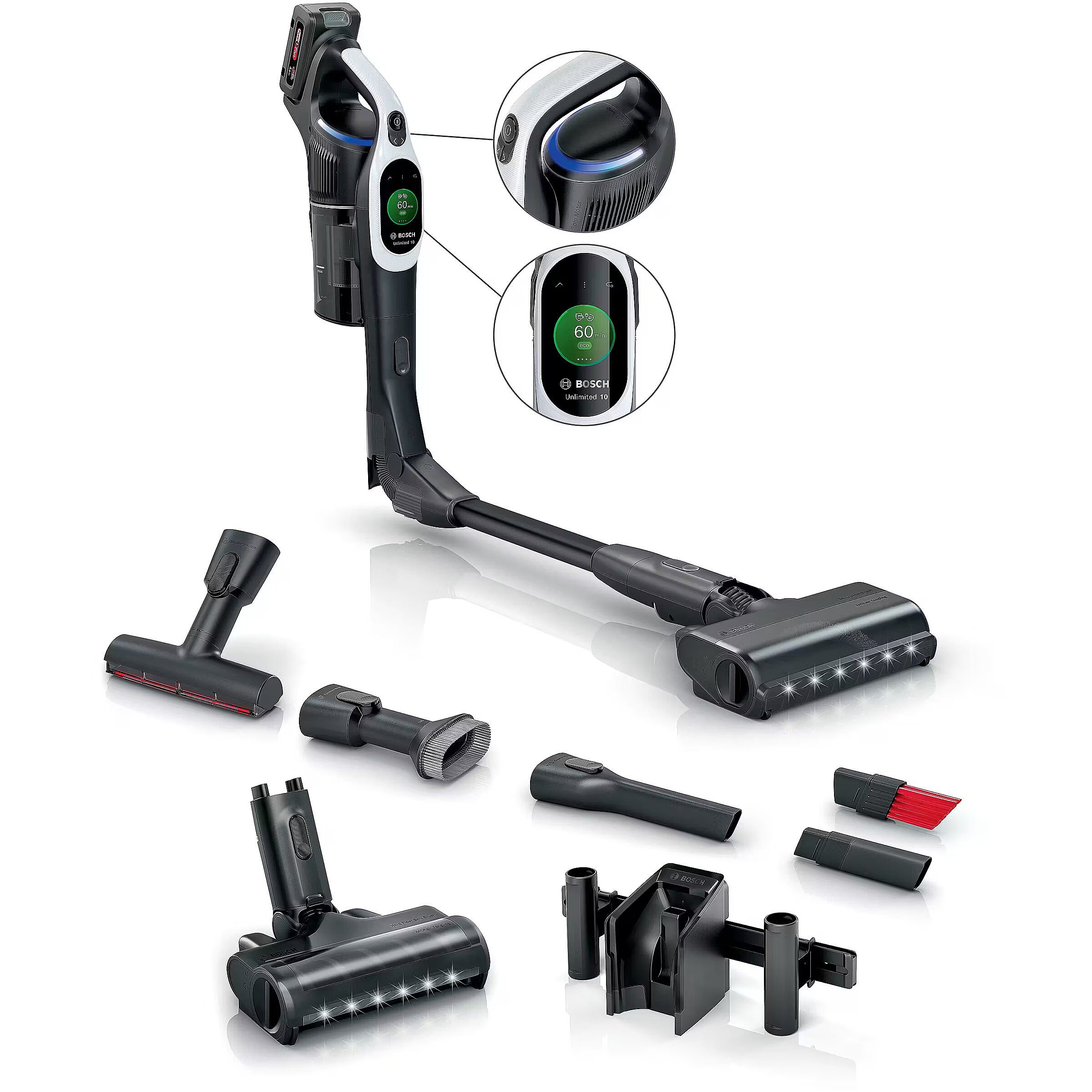 LongSummaryDescription - Bosch BCS1041WAC. Product type: Stick vacuum, Dust container type: Bagless, Product colour: Black, White. Cleaning type: Dry, Vacuum air filtering: HEPA, Dirt separating method: Filtering. Power control: Electronic. Power source: Battery, Maximum input power: 23.5 W, AC input voltage: 100-240 V. Package width: 790 mm, Package depth: 295 mm, Package height: 235 mm