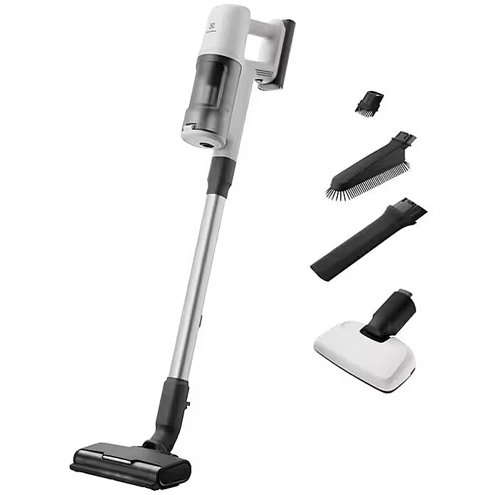 description_en - Powerful cleaning performance with DustSpotter™ LED lights and long battery life.This cordless vacuum cleaner delivers up to 50 minutes of runtime and efficient cleaning on all surfaces with the PowerPro multi-surface nozzle.The Cyclonic filtration system with 99.92% efficiency ensures constant suction and cleaner air.Built-in LED lights illuminate dark corners, while the motorized brush with rotating head removes dust, hair, and debris.Equipped with a 21.6 V Li-ion battery (2500 mAh) and a replaceable cell pack, the unit includes a wall-mounted charging station for convenient storage. Technical specifications Runtime: up to 50 min Average runtime: 20 min Minimum runtime: 40 min Charging time: 4.5 h Noise level: 79 dB(A) Suction power: 85 W Filtration efficiency: 99.92% Battery: Li-ion, 21.6 V, 2500 mAh Replaceable battery: Yes Automatic mode: No Motorized nozzle: Yes LED nozzle light: Yes Floor nozzle: PowerPro multi-surface Additional tools: BedPro UV, Soft brush, Short crevice brush Dust container volume: 0.6 L Filtration system: Cyclonic + dual filter Free-standing design: No Storage: Wall-mounted with charging function Recycled plastic content: 50% Wi-Fi connectivity: No