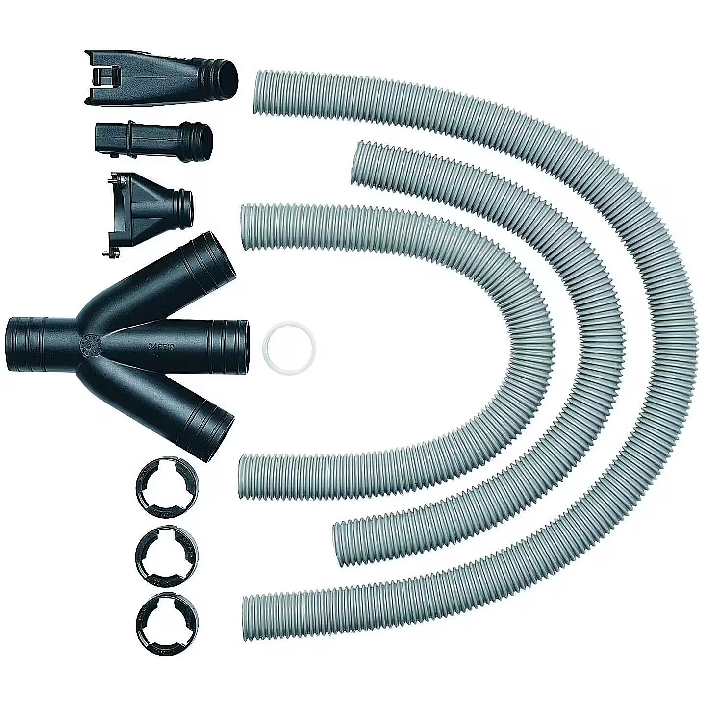 Technical_details - Extraction set DE7778, O 35mm, for miter saw DW700, vacuum cleaner attachment The DE7778 extraction set from DeWALT with a diameter of 35mm is suitable for the DW700 miter saw. The set consists of three suction hoses, a triple distributor and various adapters. Type: Vacuum Cleaner Attachment EAN code: 5011402291069 Manufacturer part number: DE7778-XJ Suitable for: chop / miter saws Compatible with: DeWALT chop saw DW700 Set: 10 pieces Size: O | 35mm Material: Plastic