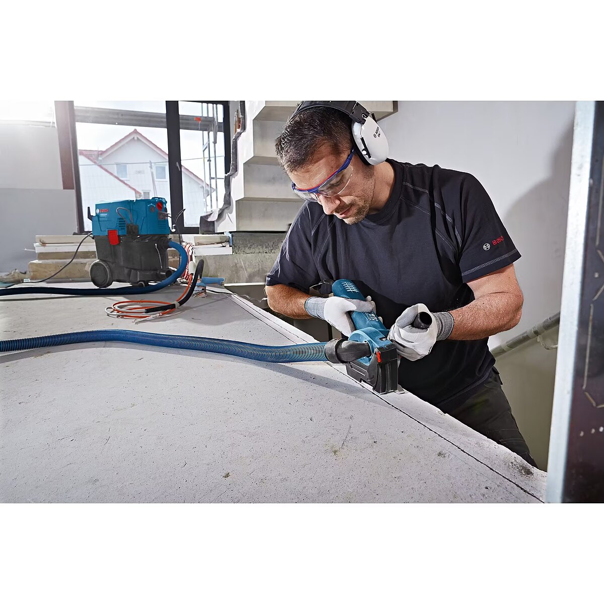 LongDesc - Virtually dust-free cutting of stone with small angle grinders1 For clean, tidy operation and hardly any cleaning work afterwards2 Easy handling: Convenient connection to angle grinder and dust extractor3 Works with many Bosch angle grinders with 125 mm diameter