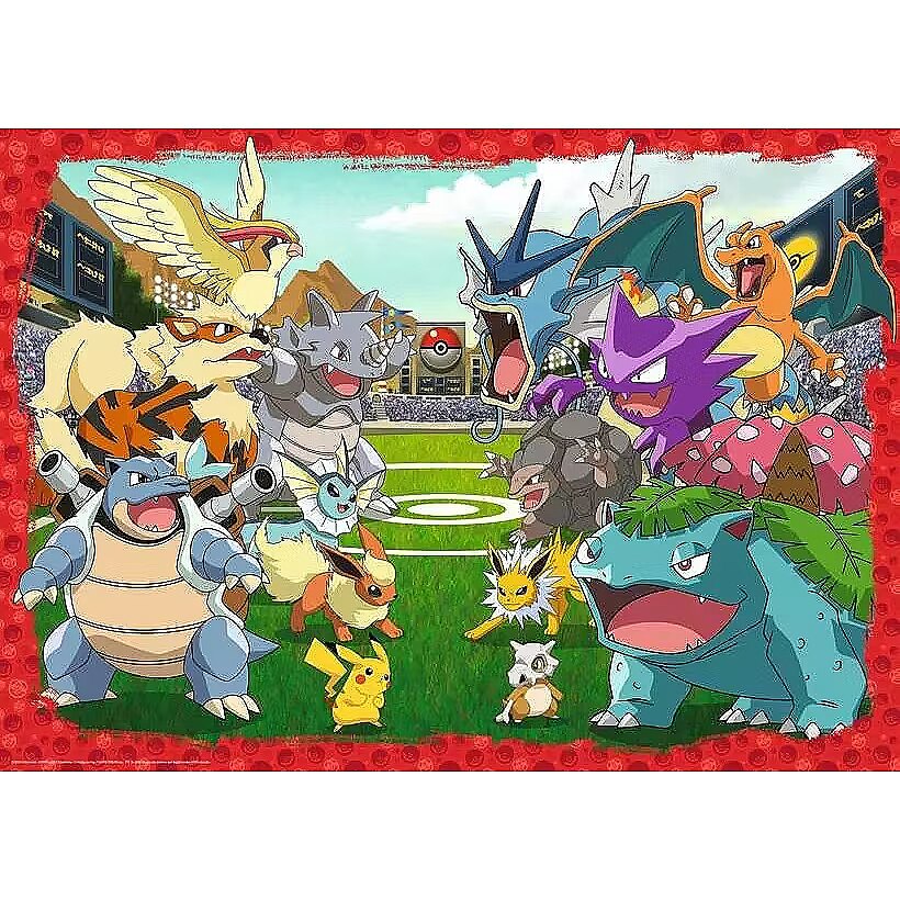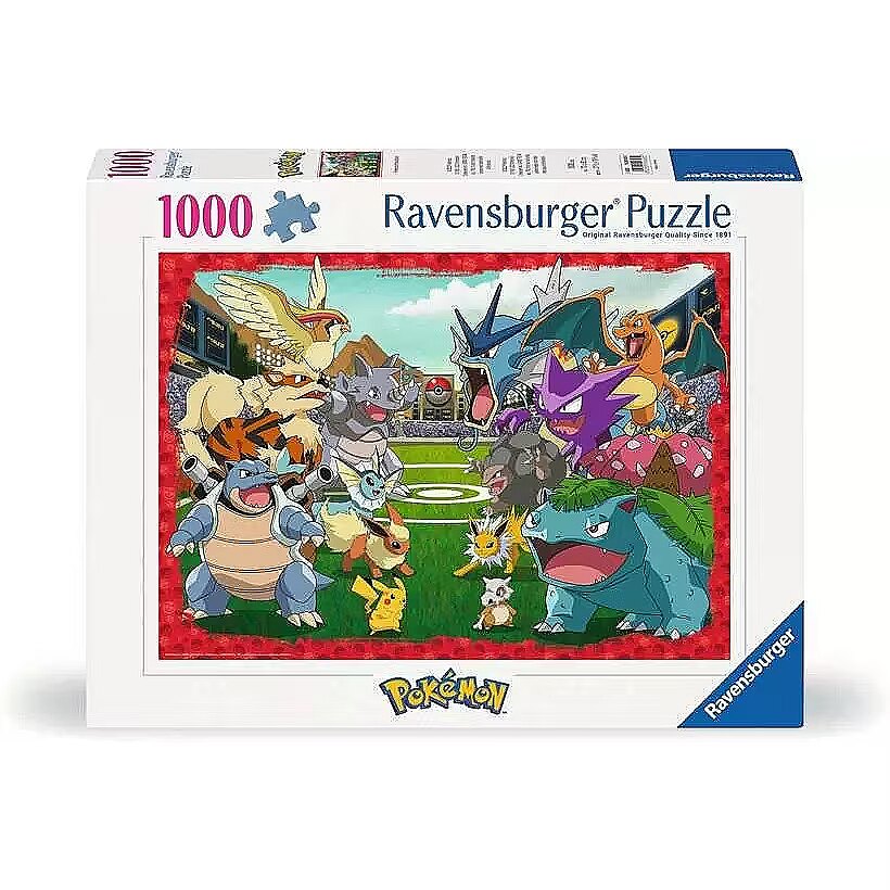 Description - Puzzle 1000 elementów Ravensburger z motywem: Pokemon Ostateczna Rozgrywka Po ułożeniu puzzle mają wymiary 70 x 50 cm. Są przeznaczone dla osób powyżej 14. roku życia. Ravensburger jest największym producentem puzzli na świecie, które wytwarza od ponad 130 lat. Puzzle marki Ravensburger posiadają antyrefleksyjną powłokę - są wykonane z opatentowanego, grubego kartonu z miękką podściółką (obrazek nadrukowany jest na papierze o strukturze włókna lnu, które ogranicza odbijanie światła, ułatwia układanie, a sam obrazek, niezależnie od wielkości puzzli, jest wyraźniejszy). Ponadto dzięki opatentowanej technologii SoftClick każdy pojedynczy element puzzli Ravensburger ma unikalny kształt i pasuje wyłącznie w jedno miejsce. Kształty puzzli są różnorodne dzięki ręcznie wykonanej sztancy. Puzzle Ravensburger są odporne na zginanie.