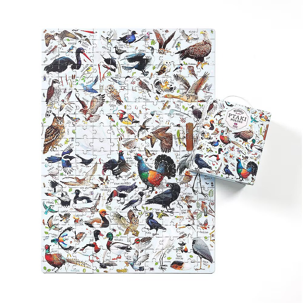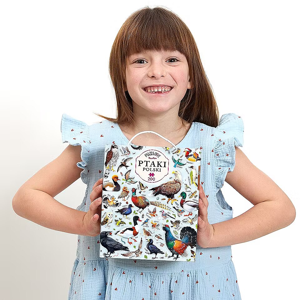 Description - Puzzlove CzuCzu Ptaki Polski 200 elementów Zapraszamy młodych ornitologów i miłośników przyrody do wspaniałej zabawy! Duże 200-elementowe puzzle z autorską ilustracją przedstawiają przeróżne ptaki, które można spotkać w Polsce - czasem na co dzień, niekiedy tylko przelotem. To świetny pomysł na mądry prezent dla starszaków i uczniów. Zabawa inspiruje do wspólnego spędzania czasu, zdobywania nowej wiedzy i spacerów. Układanie puzzli rozwija koncentrację i spostrzegawczość i pozwala się wyciszyć. Puzzlove CzuCzu dobrze wie, czym jest radość układania!