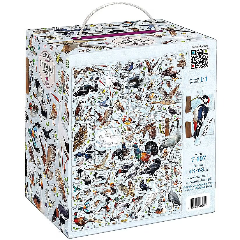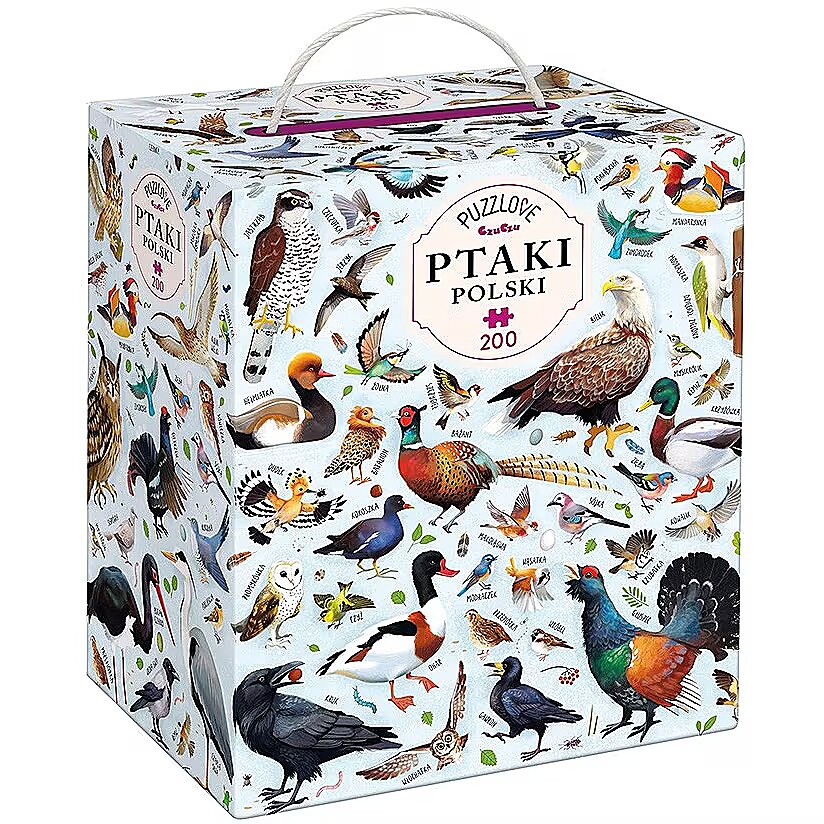 Apraksts - Puzzlove CzuCzu Polijas putni 200 elementi Mēs aicinām jaunos ornitologus un dabas mīļotājus lieliski izklaidēties! Lielā 200 elementu puzle ar autora ilustrāciju attēlo dažādus putnus, kas sastopami Polijā - reizēm ikdienā, reizēm tikai garāmejot. Tā ir lieliska ideja atjautīgai dāvanai vecākiem bērniem un skolēniem. Spēle iedvesmo pavadīt laiku kopā, iegūt jaunas zināšanas un doties pastaigās. Puzles likšana kārtā attīsta koncentrēšanās spējas un uztveres spējas, kā arī ļauj nomierināties. Puzzlove CzuCzu labi zina, kāds ir kārtošanas prieks!