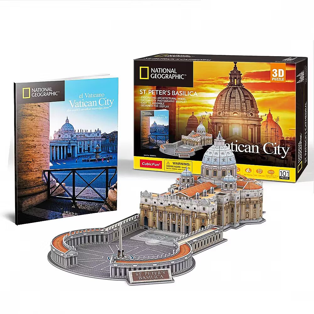 Description - 3D Puzzle: St. Peters Basilica Create a 3D model of the Vaticans St. Peters Basilica! The set includes 101 puzzle pieces made from a special foam-like material. Each piece is numbered, pre-cut, and placed on sheets for easy assembly. Simply pop the pieces out of the sheets and assemble them according to the included instructions-no glue or special tools required.