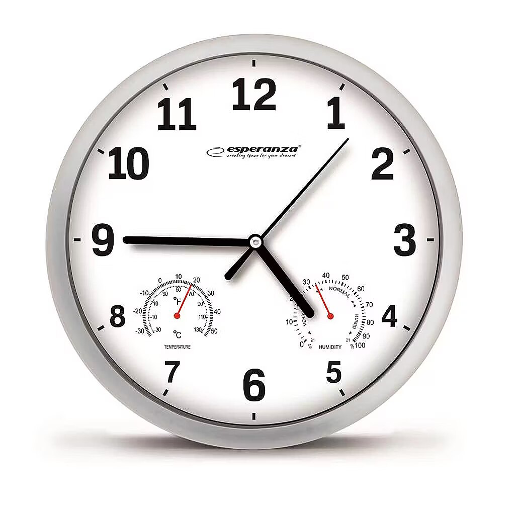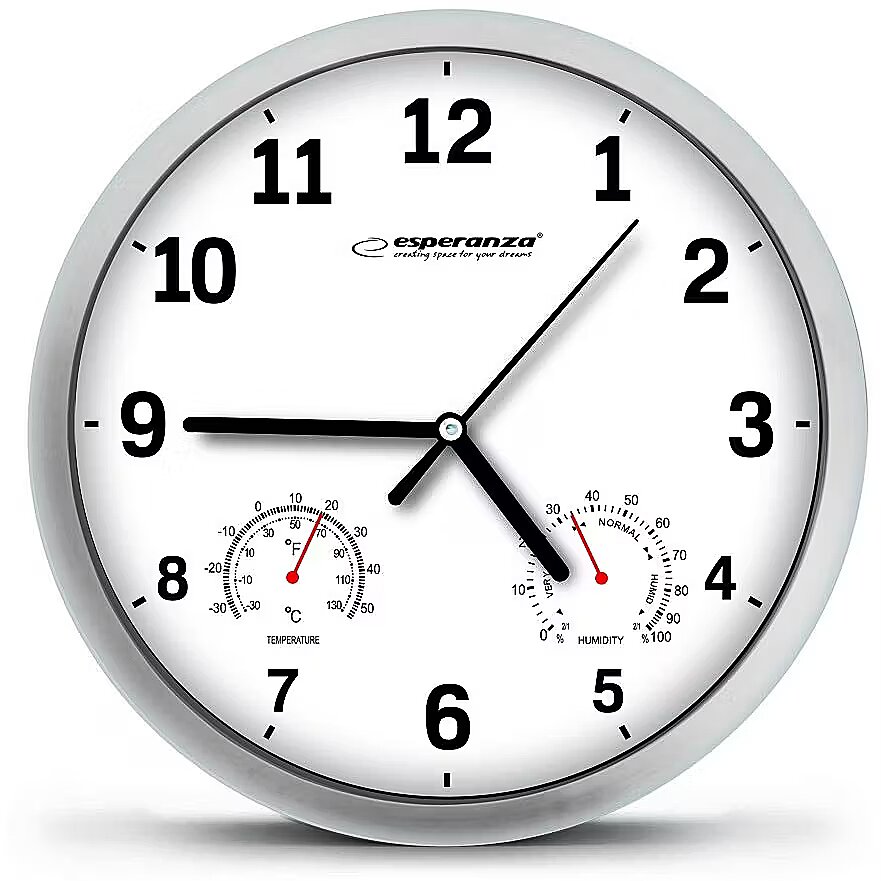 Our wall clock Esperanza LYON serves not only to show the time - you can read it on a temperature and humidity. Its design makes it decorate each apartment, office, shop or restaurant.