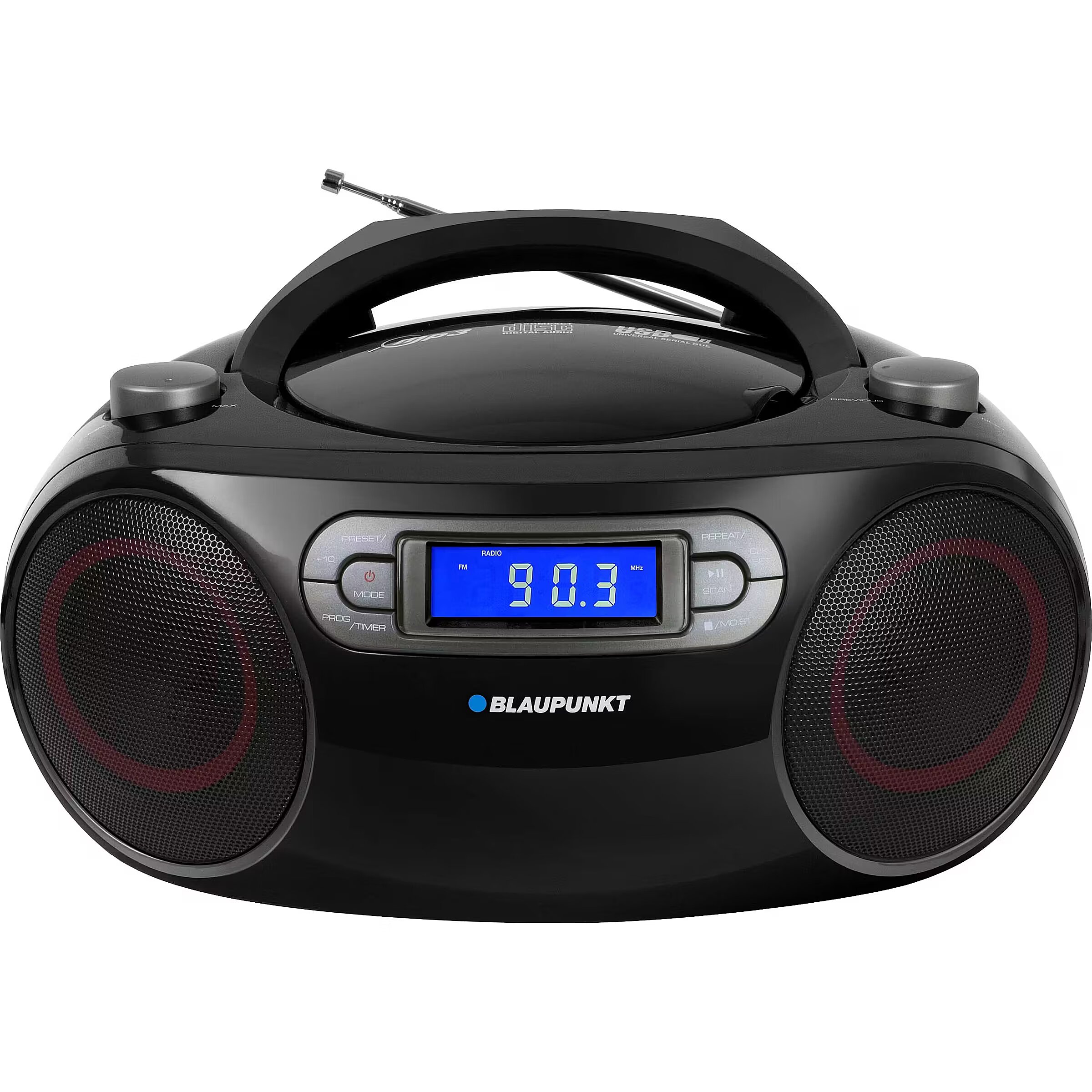 Apraksts - Portatīvais radio FM/CD/MP3/USB/AUX BB18BK Mūzika katru dienu! Mūzika mūs pavada katru dienu. Mēs to klausāmies mājās, gatavojot ēdienu, automašīnā, darbā, skolā vai piknikā. Diena, kas piepildīta ar iecienītāko melodiju skaņām, ir ļoti patīkams laiks. Viena no ierīcēm, ar kuru mūzikas klausīšanās ir ļoti populāra, ir boombox radio. Tās var atrast pusaudža istabā, klasē vai frizētavā. Tie ir visur, kur nepieciešama smalka fona mūzika vai mācību materiāla klausīšanās. To vienkāršā lietošana un lielā funkcionalitāte padara tos par neatslābstošu panākumu gan bērnu un pusaudžu, gan pieaugušo vidū. Blaupunkt BB18BK noteikti ieinteresēs ikvienu, kurš nevar iedomāties dienu bez savas mīļākās mūzikas vai radiostacijas. Šis modelis ļauj atskaņot audio failus no dažādiem avotiem. Tas ir aprīkots ar CD atskaņotāju ar MP3 failu lasīšanas funkciju, tāpēc lietotājs var klausīties ne tikai savu iecienītāko mūziku, bet arī audio grāmatas. Iebūvēto FM uztvērēju ar iespēju saglabāt pat 40 radiostacijas noteikti novērtēs cilvēki, kuri ikdienā klausās savas iecienītākās radio programmas, ko pārraida dažādas radiostacijas. Pateicoties PLL funkcijai (automātiska pieejamo radiostaciju meklēšana un saglabāšana), radiostaciju iestatīšanas process ir ļoti vienkāršs un neaizņem daudz laika. BB18BK ir aprīkots ar USB pieslēgvietu saderīgu MP3 un WMA atmiņas ierīču pieslēgšanai. Turklāt korpusa sānos ir AUX ieeja, kas ļauj boombooksam pieslēgt jebkuras ārējās ierīces ar analogo skaņas izeju. Vienkāršs savienojums ir viss, kas nepieciešams, un jūs varat baudīt ievērojami uzlabotu skaņu. Raidaparātam ir arī 3,5 mm minijack austiņu ieeja, lai jūs varētu klausīties savu iecienītāko mūziku vai audiogrāmatas, netraucējot citiem. BB18BK ir pulkstenis ar modinātāju, ko novērtēs pat lielākie miega biedri. Galu galā, vai nav jauki pamosties, skanot iecienītākās radiostacijas skaņām? Šāds rīts padarīs visu dienu veiksmīgu! Boombox var darbināt no elektrotīkla vai sešām nomaināmām R14 baterijām. Tas padara ierīci ideāli piemērotu ne tikai kā stacionāru atskaņotāju, bet arī kā pārnēsājamu izklaides avotu, ko ņemt līdzi, piemēram, piknikā. Lietošanas ērtumu palielina arī viegli salasāms LCD displejs, kas parāda izvēlētās radiostacijas frekvenci, dziesmas numuru vai pašreizējo laiku.