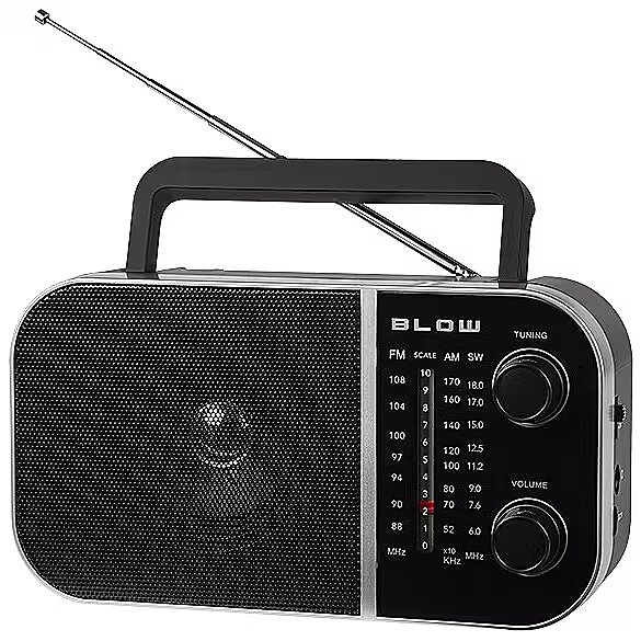Description - AM/FM RA6 portable analogue radio BLOW compact portable radio with basic functions for receiving radio stations on AM/FM frequencies. The device is simple and intuitive to use, any user will be able to cope with its operation. Ideal for a picnic with friends in the countryside, during a family trip or relaxing at home. The BLOW RA6 portable radio receives on AM and FM frequencies. The user can select their favourite station using the tuning control. Despite its small size, the radio features excellent sound, which is ensured by a high-quality 3.5" speaker. The entire product has been made of carefully selected materials to guarantee the satisfaction of every user.
