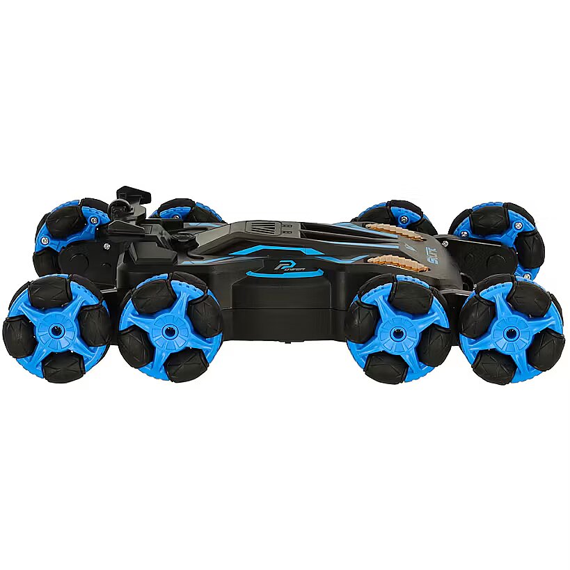 description_ru - Необычный – вот как можно охарактеризовать этот автомобиль с дистанционным управлением! И чем же он выделяется? Во-первых, 8 колес, которыми можно управлять таким образом, что автомобиль преодолеет любое препятствие – даже лестницу. На пульте управления, помимо классических кнопок для управления автомобилем в четырех направлениях, также есть функция трансформации колес. Это позволяет детям легко изменять высоту шасси, адаптируя его к различным поверхностям и препятствиям. У автомобиля есть несколько дополнительных функций, которые сделают игру более приятной: музыка, подсветка и даже выхлопная труба, из которой выходит пар. В комплект также входит пульт дистанционного управления, позволяющий управлять автомобилем жестами. Технические характеристики: