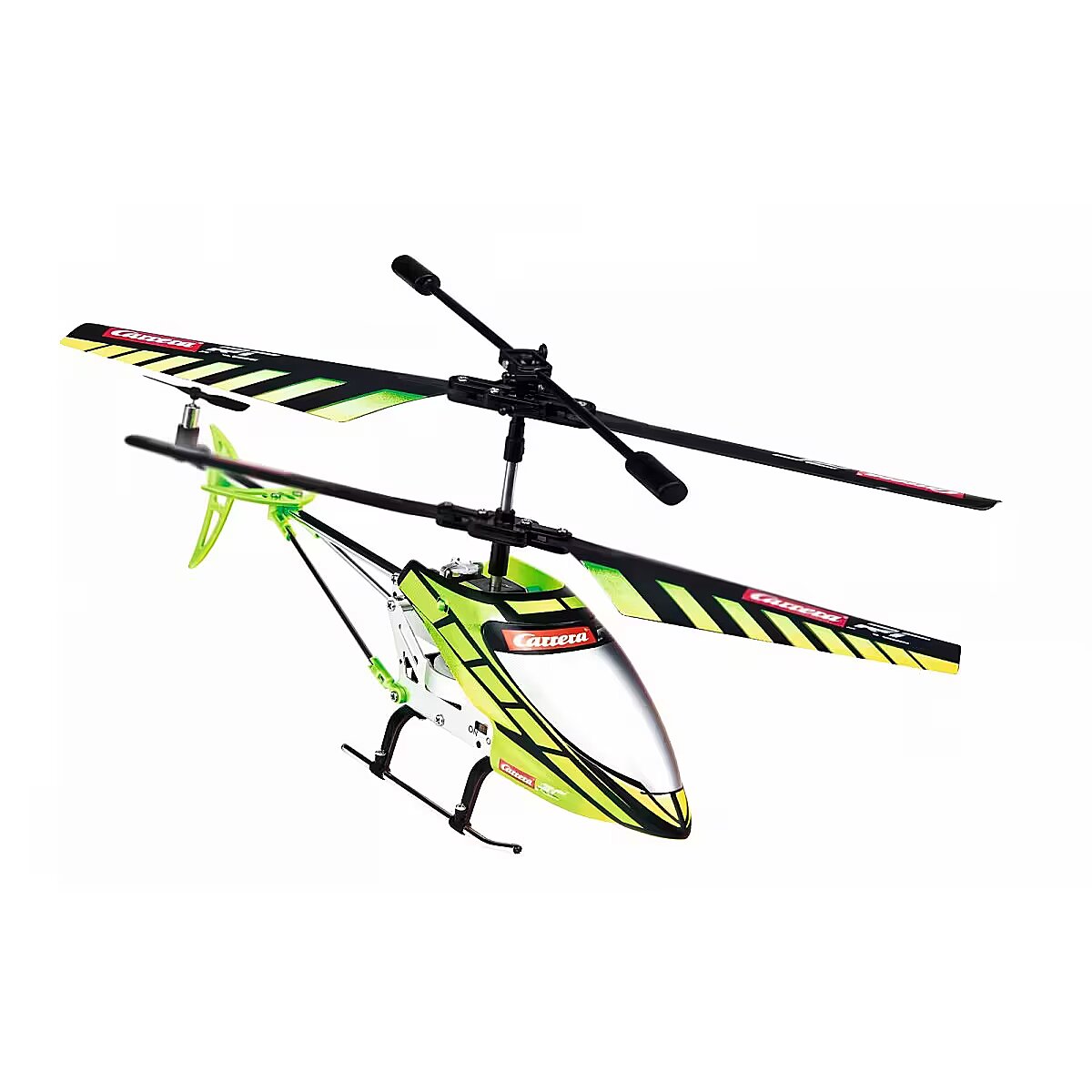 Description - RC helicopter Green Chopper 2.0 2.4GHz You can easily and precisely control your RC helicopter in any direction. With 2.4GHz radio technology and three channels, it is also possible to launch up to 16 RC helicopters or quadrocopters into the air. The gyroscopic system guarantees stable flight, and even more flying fun is provided by the aluminium fuselage and high-quality, coaxial rotor control. The 18 cm long RC helicopter can hover for approximately 6 minutes!