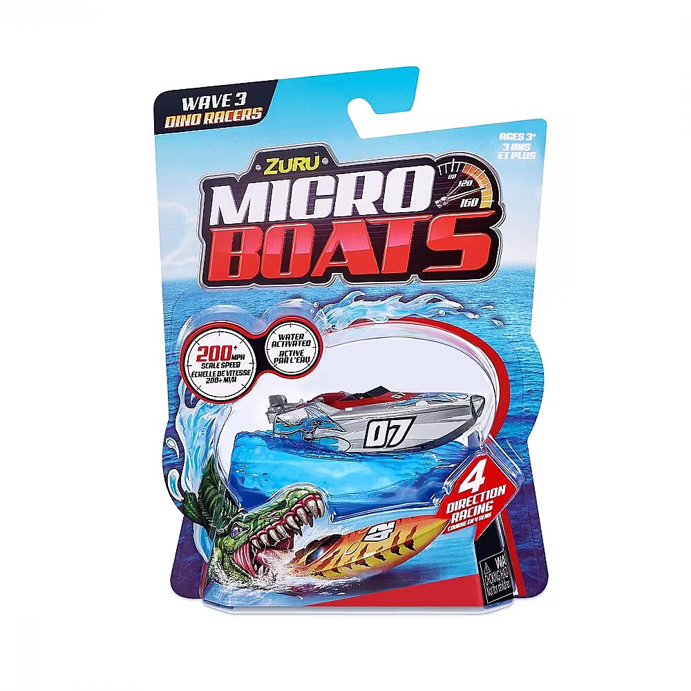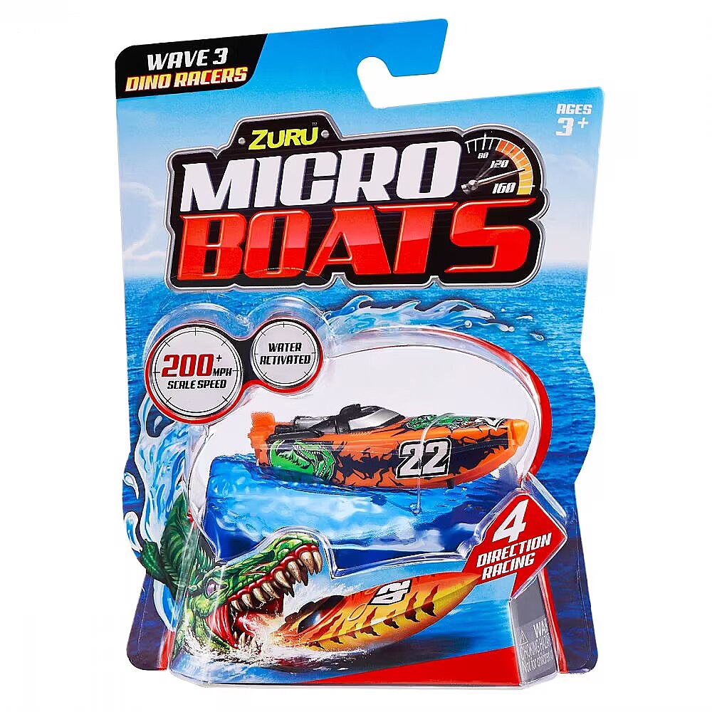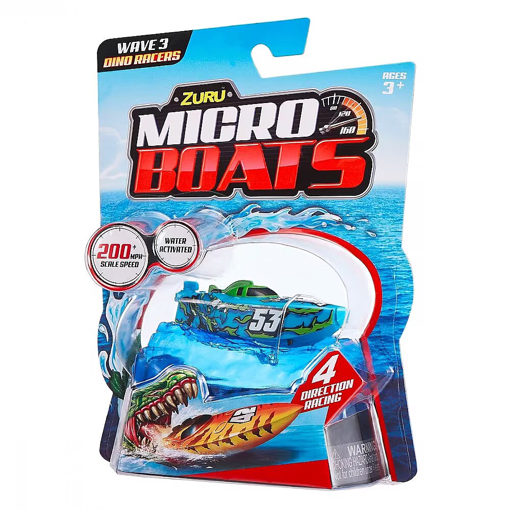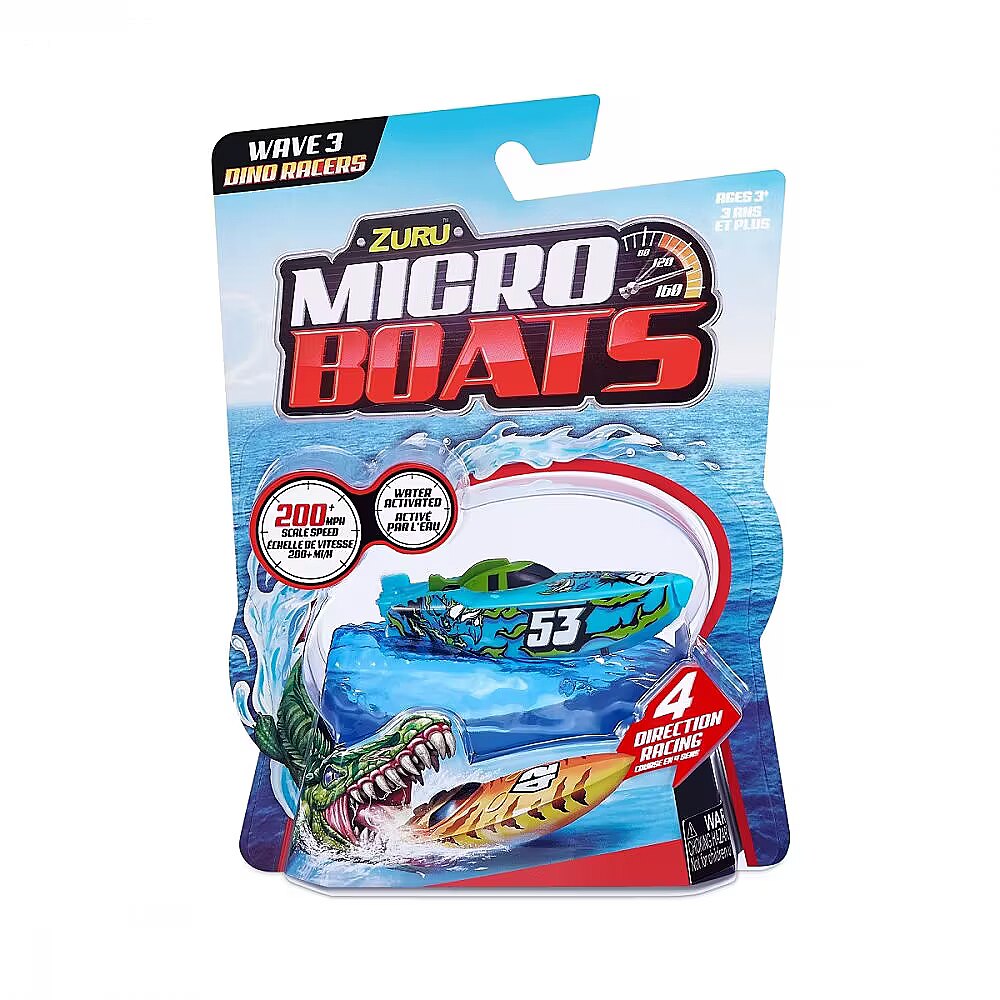 Description - Micro Boat ZURU Micro Boats are fully motorized, self-steering speedboats that make full 360° rotations and automatically reverse when hitting a wall thanks to the latest microrobot sensor technology! Race in all four directions at an incredible speed of over 320 km/h! Smart technology allows Micro Boats to save battery by going to sleep mode after a certain amount of activity! To start his motor, just place him in the water and he will automatically go ahead! Move the rudder to different positions to perform tricks! Race against your friends or perform crazy stunts in different environments, such as a pool, bathtub, sink or other body of water! Only the horizon is the limit! The micro boats come in a variety of colors and models, so you can collect them all and grow your fleet! Different patterns. The product is sent randomly, it is not possible to choose a specific model. The price is for 1 pc.