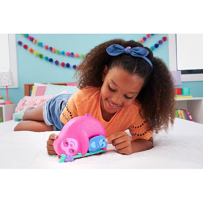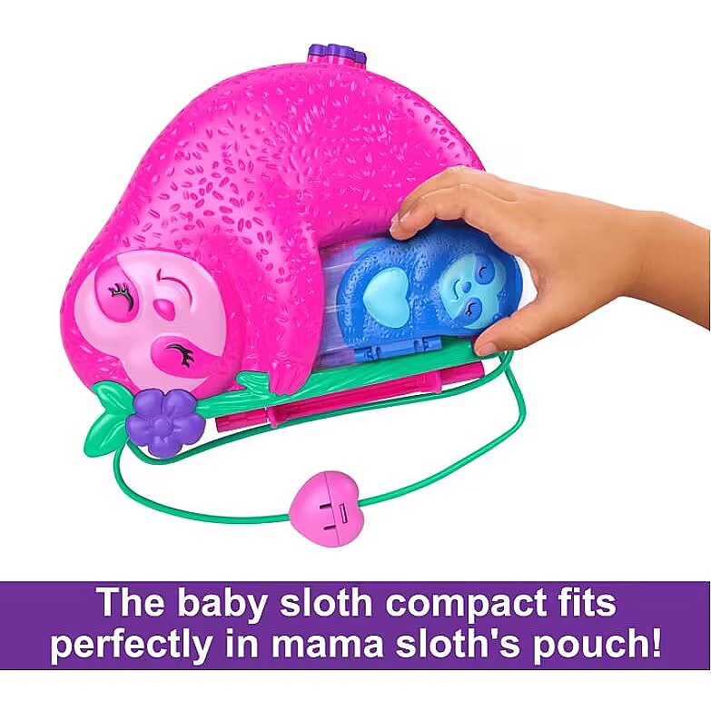 Title - Polly Pocket Dolls and Playset, Travel Toys, Sloth Family 2-in-1 Purse Compact