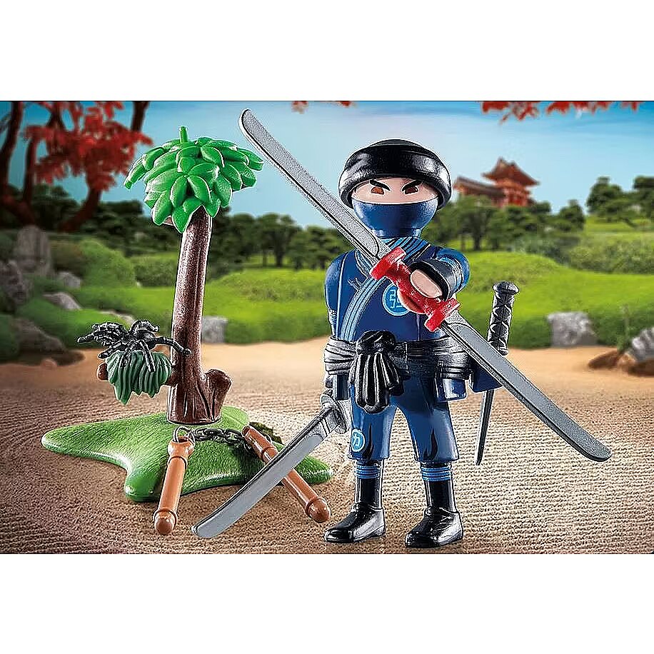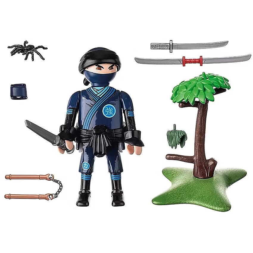 Description - PLAYMOBIL Special Plus play figure ninja with sword and lots of accessories. The PLAYMOBIL Special Plus set, Ninja, invites into the thrilling world of ninja martial arts. With various weapons, realistic combat exercises can be re-enacted. The cheerful PLAYMOBIL Special Plus figures promise lots of playfulness and are ideal for children aged 4 and up. These charming toy figures can be used either on their own or integrated into other PLAYMOBIL worlds. With their rich accessories, they provide endless possibilities for creative play.