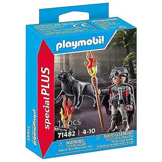Description - PLAYMOBIL Special Plus play figure warrior with wolf and lots of accessories. Join this brave warrior with his loyal wolf and experience exciting adventures. The PLAYMOBIL Special Plus set, Warrior with Wolf, includes a PLAYMOBIL figure with wolf hat and cape, as well as a wolf with movable head and legs. The cheerful PLAYMOBIL Special Plus figures promise lots of playfulness and are ideal for children aged 4 and up. These charming toy figures can be used either on their own or integrated into other PLAYMOBIL worlds. With their rich accessories, they provide endless possibilities for creative play.