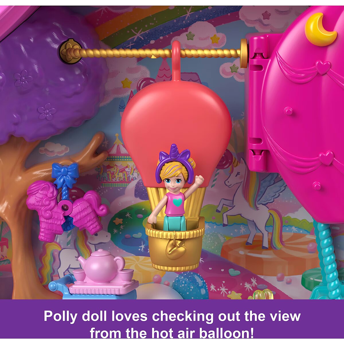 ProductName - Polly Pocket Unicorn Partyland Playset with 2 Micro Dolls, Pets & 25+ Surprise Accessories, Birthday Celebration with Hot Air Balloon Ride
