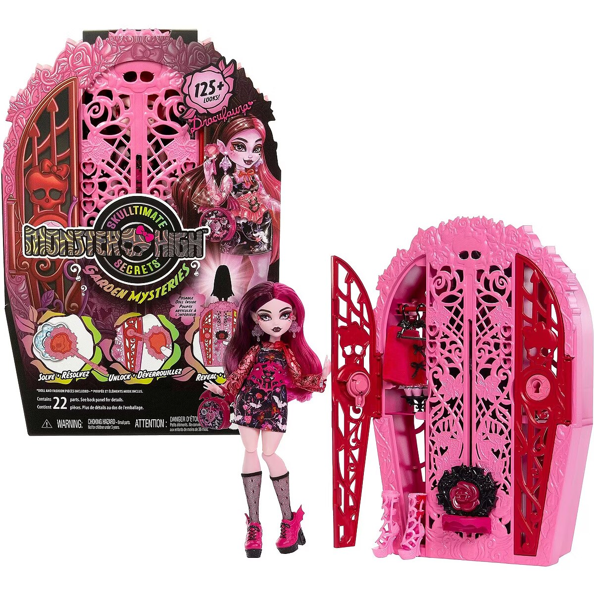 LongDesc - Solve the mystery, unlock the gates of Monster High, and reveal a Monster High doll with Skulltimate Secrets: Garden Mysteries! Kids can play spooky detective by searching for clues on the map with the 'magic' magnifying glass key. Along the way they'll discover 19+ suprises for an extraordin-eerie unboxing experience! Once playtime is over, kids ages 4 years old and up can stow the included doll, clothing, and accessories inside the creeperific closet, which is perfect for both storytelling and storage! Each sold separately, subject to availability. Fully articulated. Dolls cannot stand alone. Colours and decorations may vary.