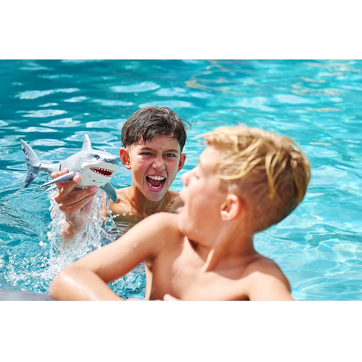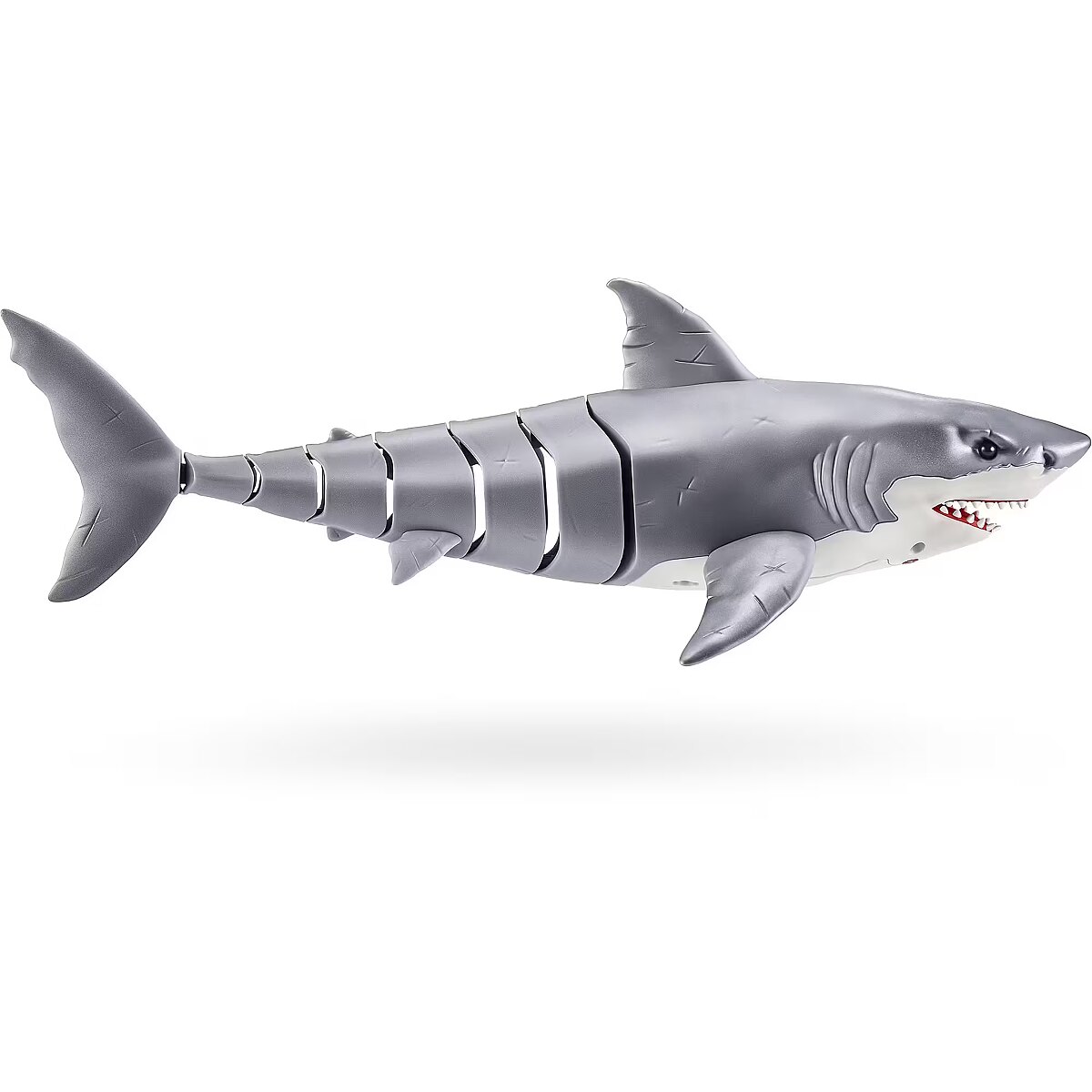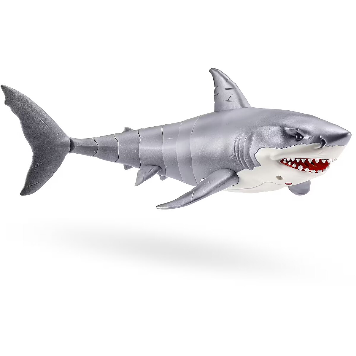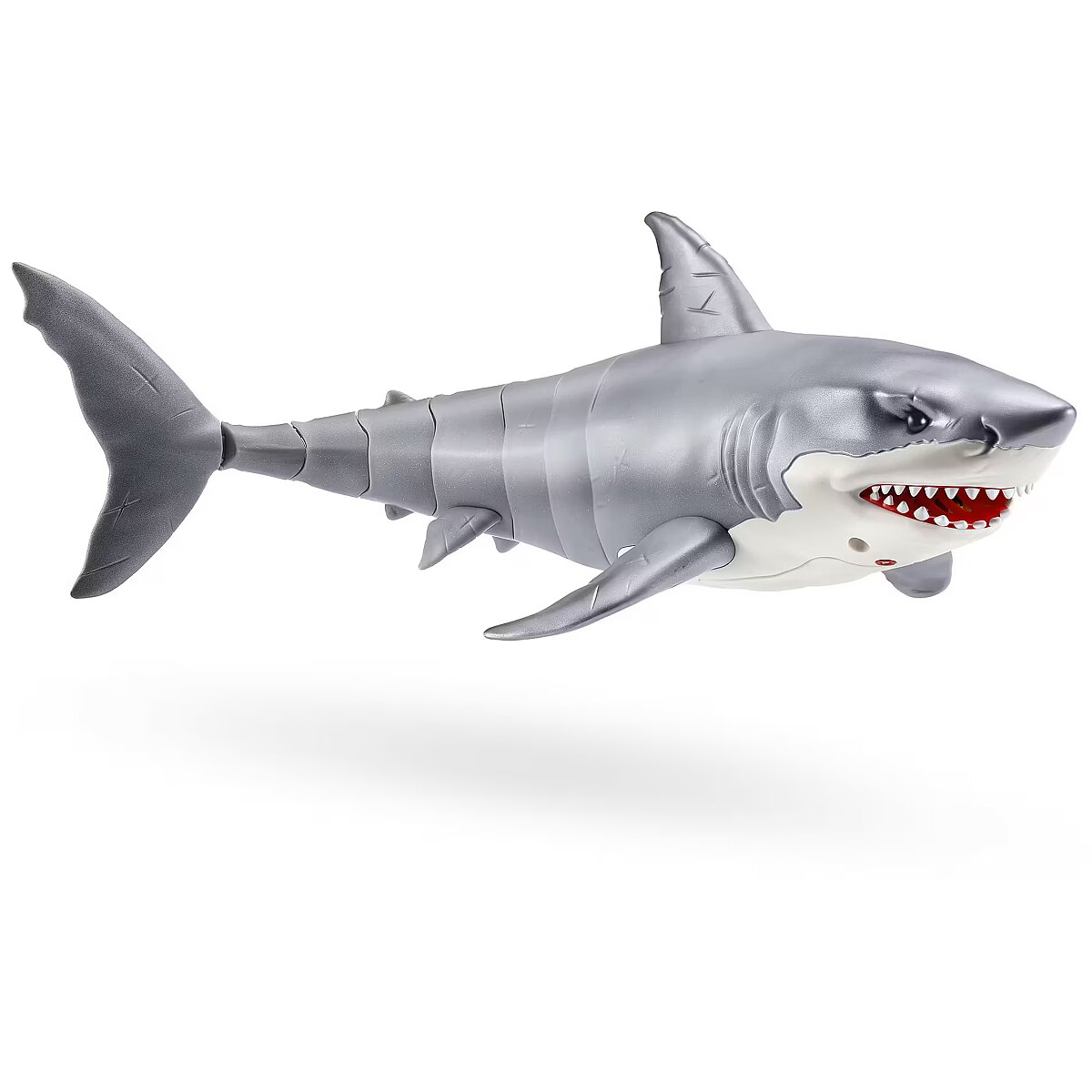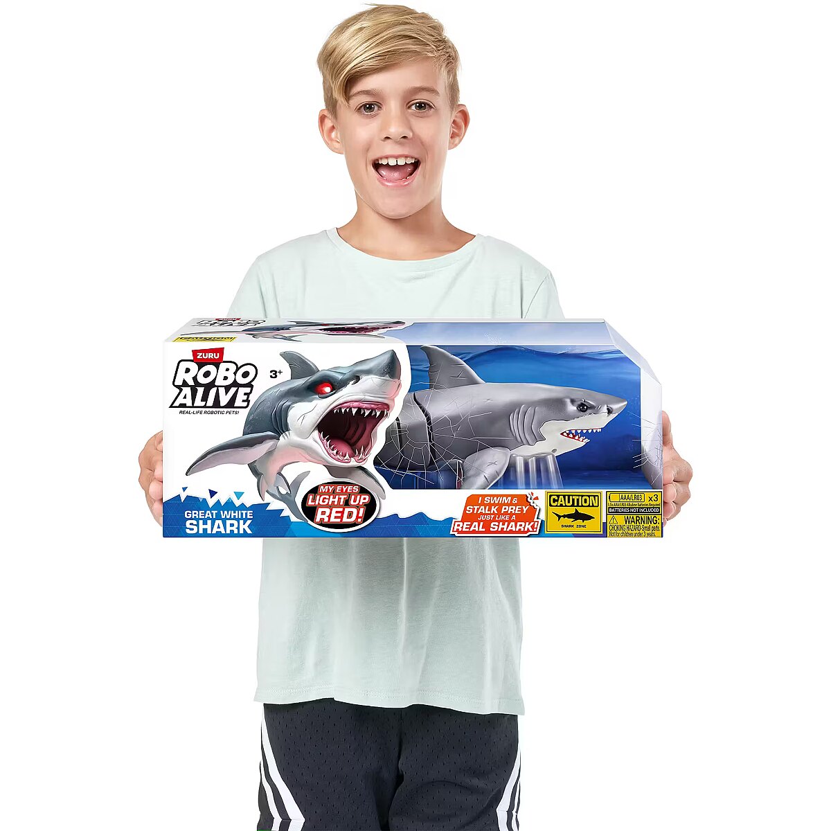LongDesc - Robo Alive Great White Shark Series 1 ZURUAre you game to tame the Great White Shark, or will you be its next prey? The Great White Shark comes to life in water with ZURU’s advanced water activated technology, and swims just like a real-life shark. You’ll have your friends and family pranked in no time. With fierce, glowing eyes and life like movements, this shark is on the hunt!