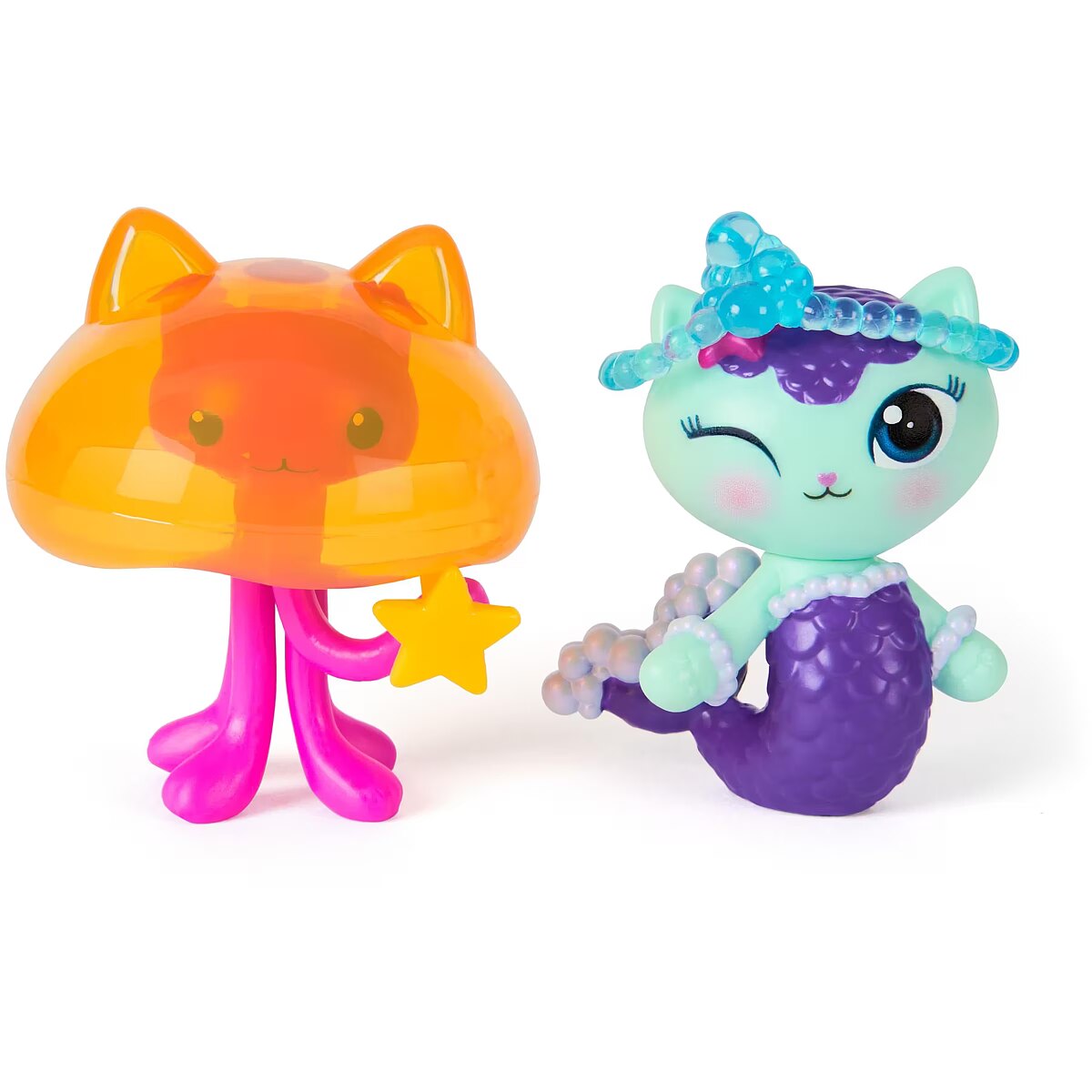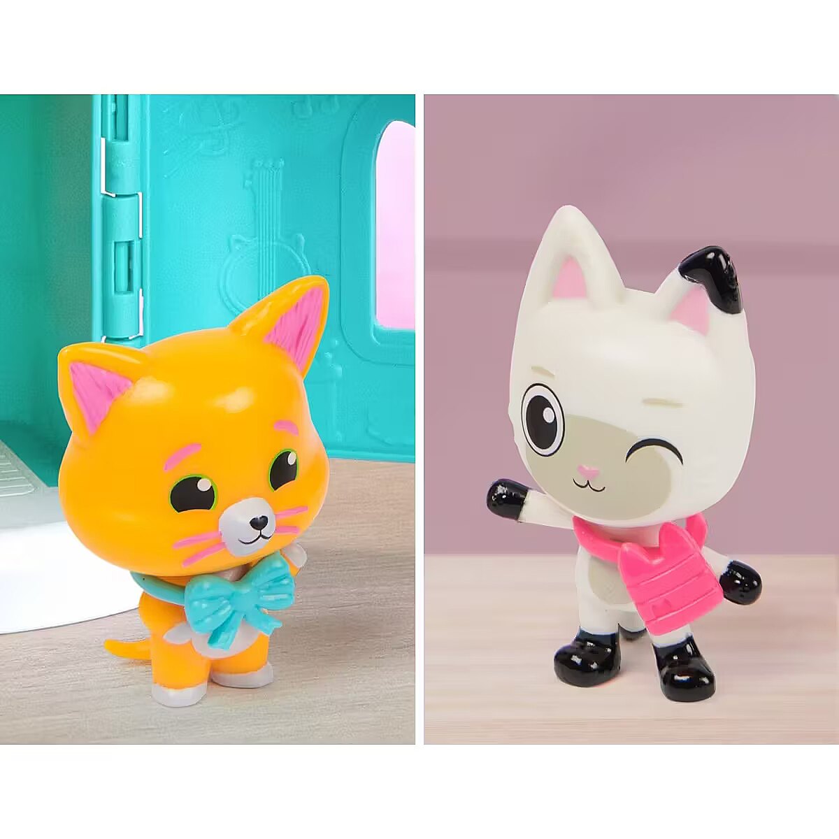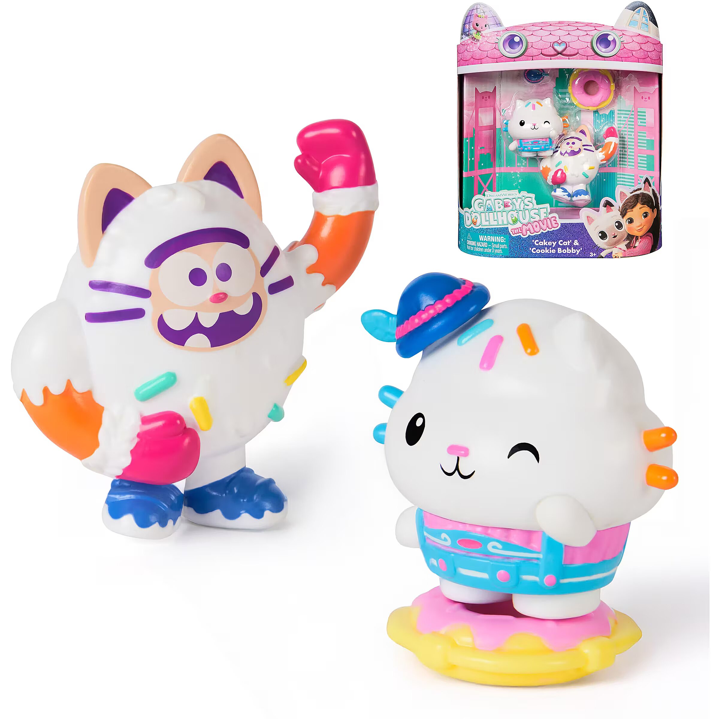 LongDesc - Enter the enchanting world of Gabby's Dollhouse: The Movie, with the Cakey Cat & Cookie Bobby movie figures set! Each figure stands over 2 inches tall and comes with delightful accessories, making it a cat-tastic pick for fun-filled adventures. Cakey sports his adorable gumdrop ear-hat, while Cookie Bobby is ready to float into fun with his donut life preserver, inviting meow-mazing explorations with these cat-terrific learning toys. This set is a fun-filled way to inspire pretend play and invites meow-mazing explorations, with these adorable Gabby cat toys for kids. Gabbys dollhouse toys are purrfect gifts for kids to relive cherished moments from the Gabby movie, and for creating new adventures in Gabby's dollhouse, with toddler toys for kids, like doll house accessories & furniture, her meow-mazing cat friends and fin-tastic mermaid toys, for endless hours of cat-terrific adventures (each sold separately)