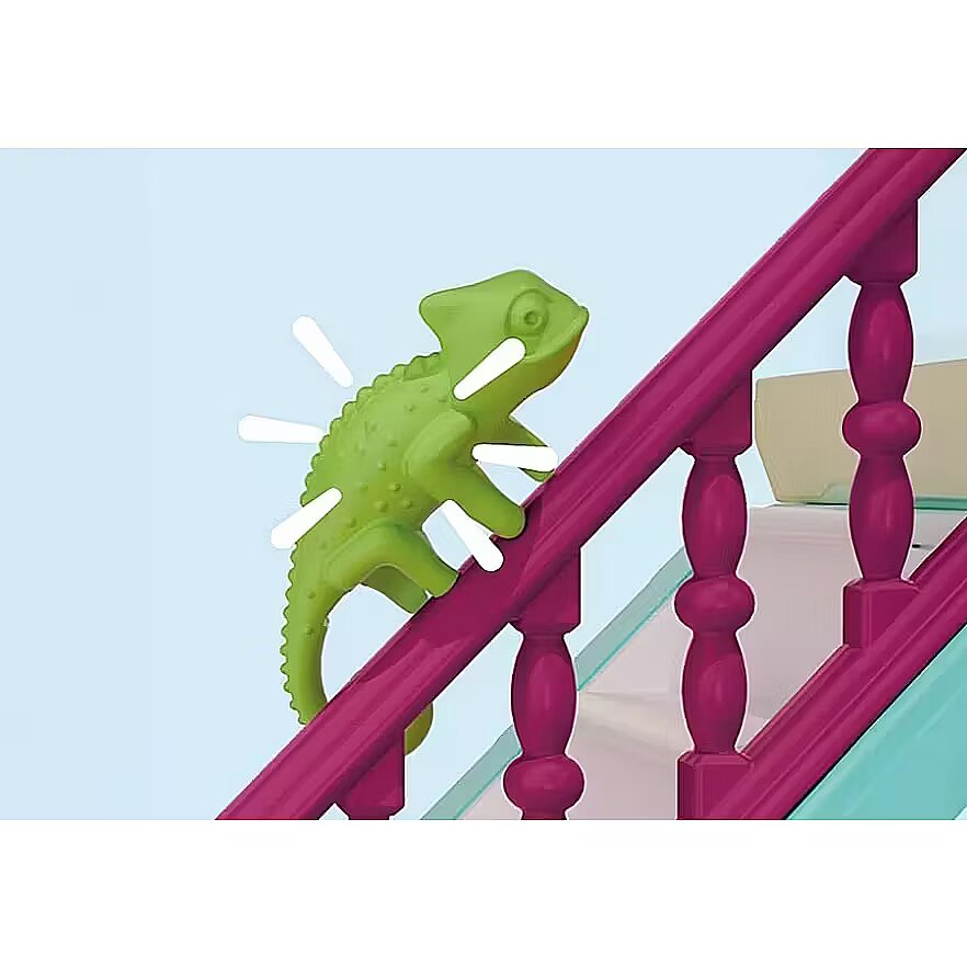 Apraksts - Laipni lūgti krāsainajā Animals & Friends pasaulē, kur brīnumi ir daļa no ikdienas dzīves un iztēlei nav robežu. Dzīvespriecīgā, dzīvespriecīgā villa ir centrālā vieta dzīvnieku mīļotājas sievietes, viņas divu bērnu un viņu dzīvnieku pavadoņu dzīvē. Šeit ikvienam ir jautri un vienmēr var paļauties vienam uz otru. Mazais zilonēns labprāt palīdz klāt galdu, bet mazā žirafe izkrāpj visus gardumus. Jenotsuņi rotaļājas bēniņos, mazajiem gepardēniem patīk šūpoties, bet mazajam pērtiķītim patīk kāpt un atpūsties kokā, kas atrodas pie mājas lieveņa. Bet kur ir mazā pīle? Viņa priecīgi šļakstās iekštelpu dīķī. Surikates ir atradušas savu iecienītāko vietu slepenā slēptuvē zem kāpnēm. Bet vispieprasītākā vieta visā mājā ir mājīgā alā ar gultu, kas atrodas zem kāpnēm. Laipni lūgti PLAYMOBIL Dzīvnieku rezidencē - priecīgā mājā, kur dzīvnieki un cilvēki dzīvo pilnīgā harmonijā! Rotaļīgajam zilonītim patīk šūpoties augstu, bet apņēmīgā žirafe no galdiņa šņāc gardumus. Bēniņos jenoti rosās ap dārgumu lādi, un mazs pērtiķītis autiņbiksītē kāpj pa koku! Pīle un vardīte jautri šļakstās mājas dīķī, un surikates izlūkos no slepenas slēptuves kāpņu telpā. Hameleons atpūšas pie omulīgas alas, un kakadu visu vēro no augšas.