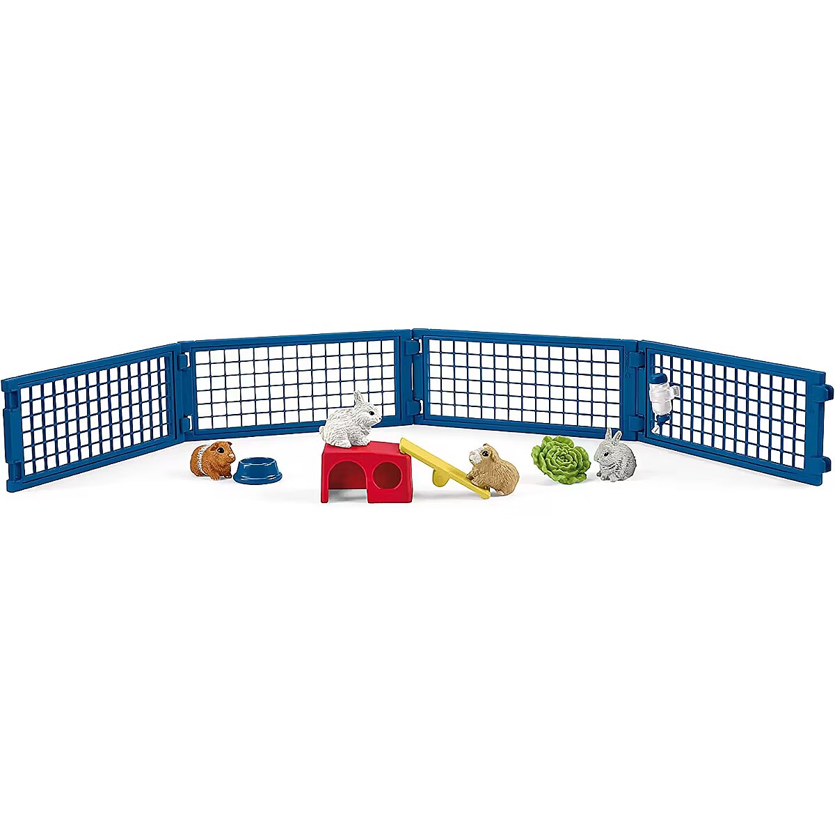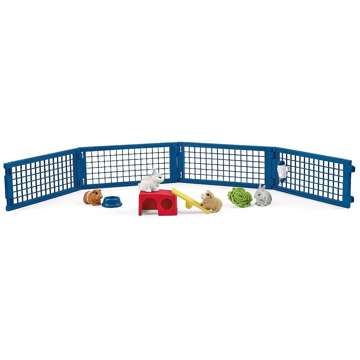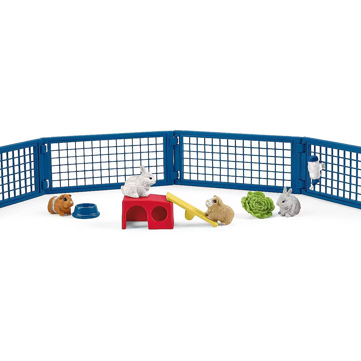 LongDesc - The rabbit and guinea pig hutch from the schleich® FARM WORLD is the perfect gift to give at any time.There's plenty to discover in the rabbit and guinea pig hutch from the schleich® FARM WORLD. The animals hide in their hutch, suck at their drink bottle, nibble the lettuce or walk over the rocking toy. This also serves as a practical ramp that they can use to climb or hop onto the roof of their hutch. The fence sections can be connected in any way or combined with other schleich® fences.