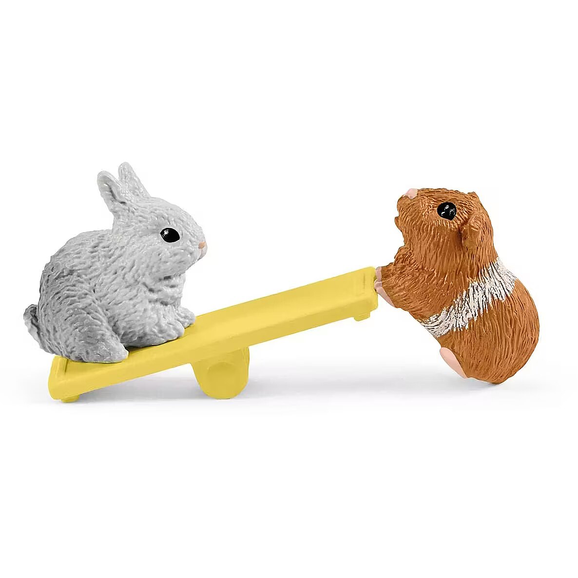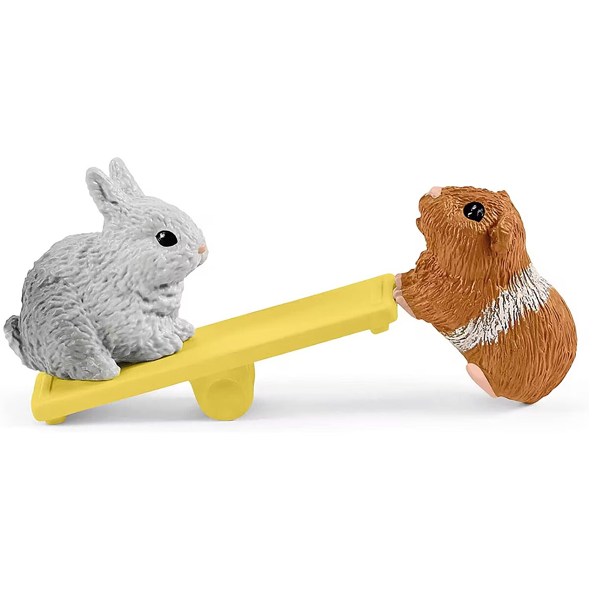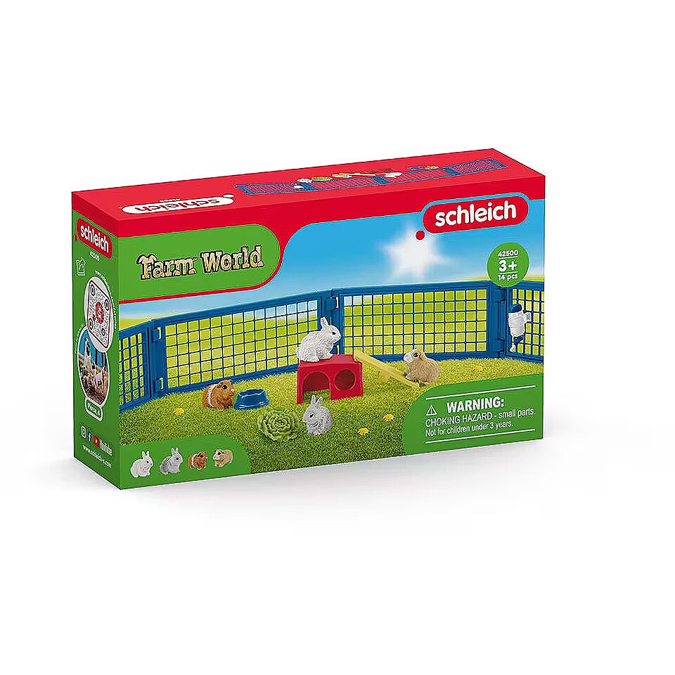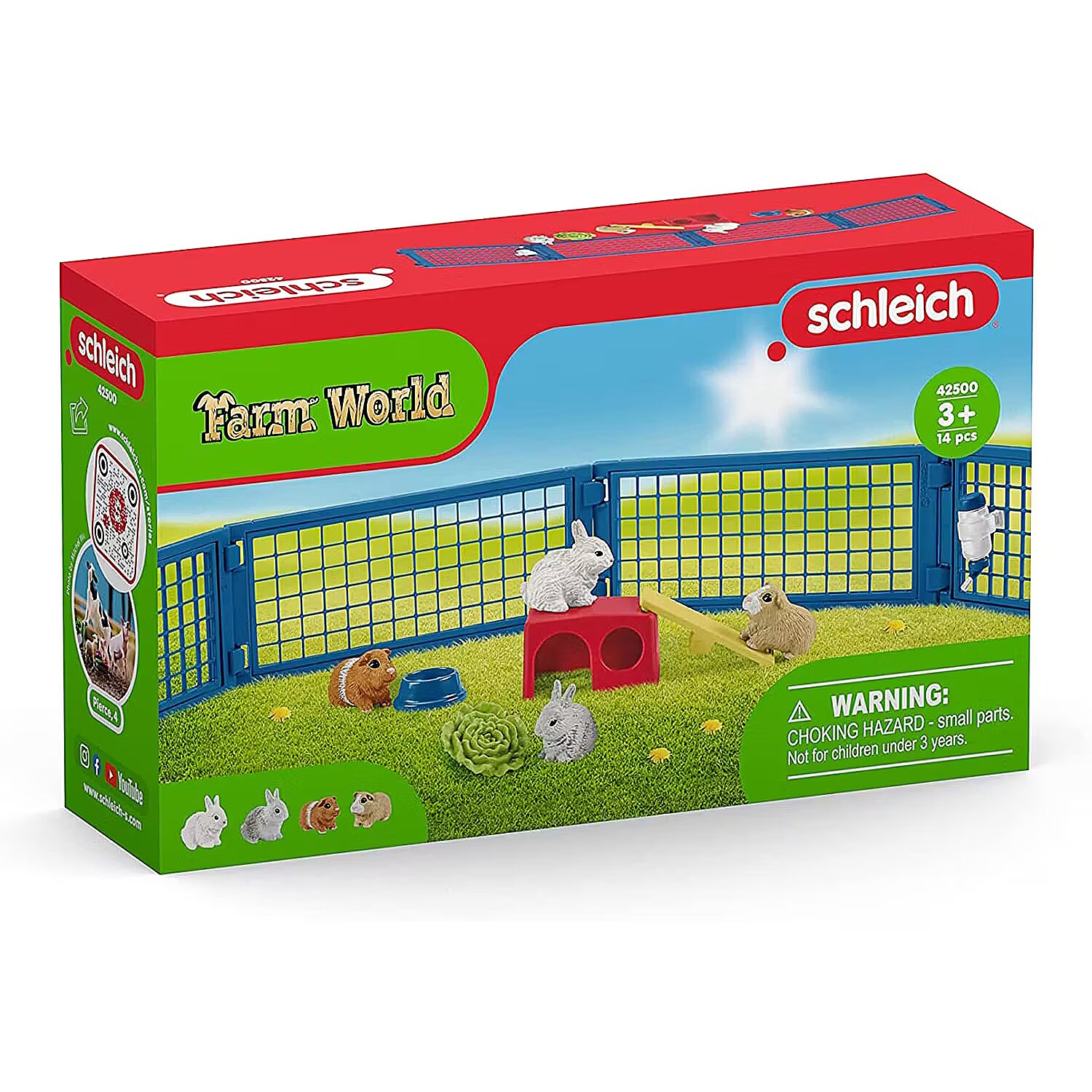 LongDesc - The rabbit and guinea pig hutch from the schleich® FARM WORLD is the perfect gift to give at any time.There's plenty to discover in the rabbit and guinea pig hutch from the schleich® FARM WORLD. The animals hide in their hutch, suck at their drink bottle, nibble the lettuce or walk over the rocking toy. This also serves as a practical ramp that they can use to climb or hop onto the roof of their hutch. The fence sections can be connected in any way or combined with other schleich® fences.