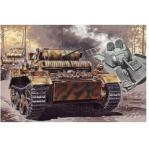Description - The PzKpfw II (Panzerkampfwagen II) was a German light tank of World War II. The first prototypes of the vehicle were built in 1934, and series production continued between 1935 and 1944, ending with the production of around 1,850 vehicles. The A version of the tank was powered by a single 130hp Maybach HL 57 TR engine. Its armament consisted of 1 KwK 30 calibre 20 mm cannon and 1 MG 34 calibre 7.92 mm machine gun located in the turret. The PzKpfw II was developed as a result of a competition announced by the German Bureau of Armaments for a light tank weighing up to 10 tonnes armed with a 20 mm cannon. The said competition was won by MAN, in cooperation with Daimler-Benz. Series production began in 1935, and numerous variants of the PzKpfw II tank were developed. Chronologically, the first was the A version, which was, however, produced in relatively small numbers. Shortly afterwards, the B version was created, which already had a new, more powerful engine and a modified chassis. Already in 1937, the C version was developed, which had a fundamentally changed undercarriage and the frontal armour of the fuselage was reinforced. At the end of 1940, the F version was developed, which had stronger armour and a better gearbox compared to the C version. In 1942, production of the L (Luchs) version began, which had a completely new chassis, a new 180 hp engine and a significant increase in maximum speed from 40 km/h to 60 km/h. Numerous other vehicles were also developed on the PzKpfw II tank chassis, such as the Wespe self-propelled howitzer and the Marder II tank destroyer. PzKpfw II tanks were used on almost all fronts of the Second World War, with the PzKpfw II being assigned to secondary tasks from 1942 onwards.