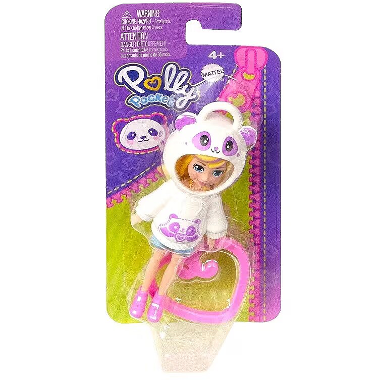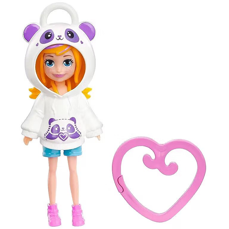 Title - Polly Pocket Travel Toys, Friend Clips Polly Doll with Panda Hoodie and Heart-Shaped Clip