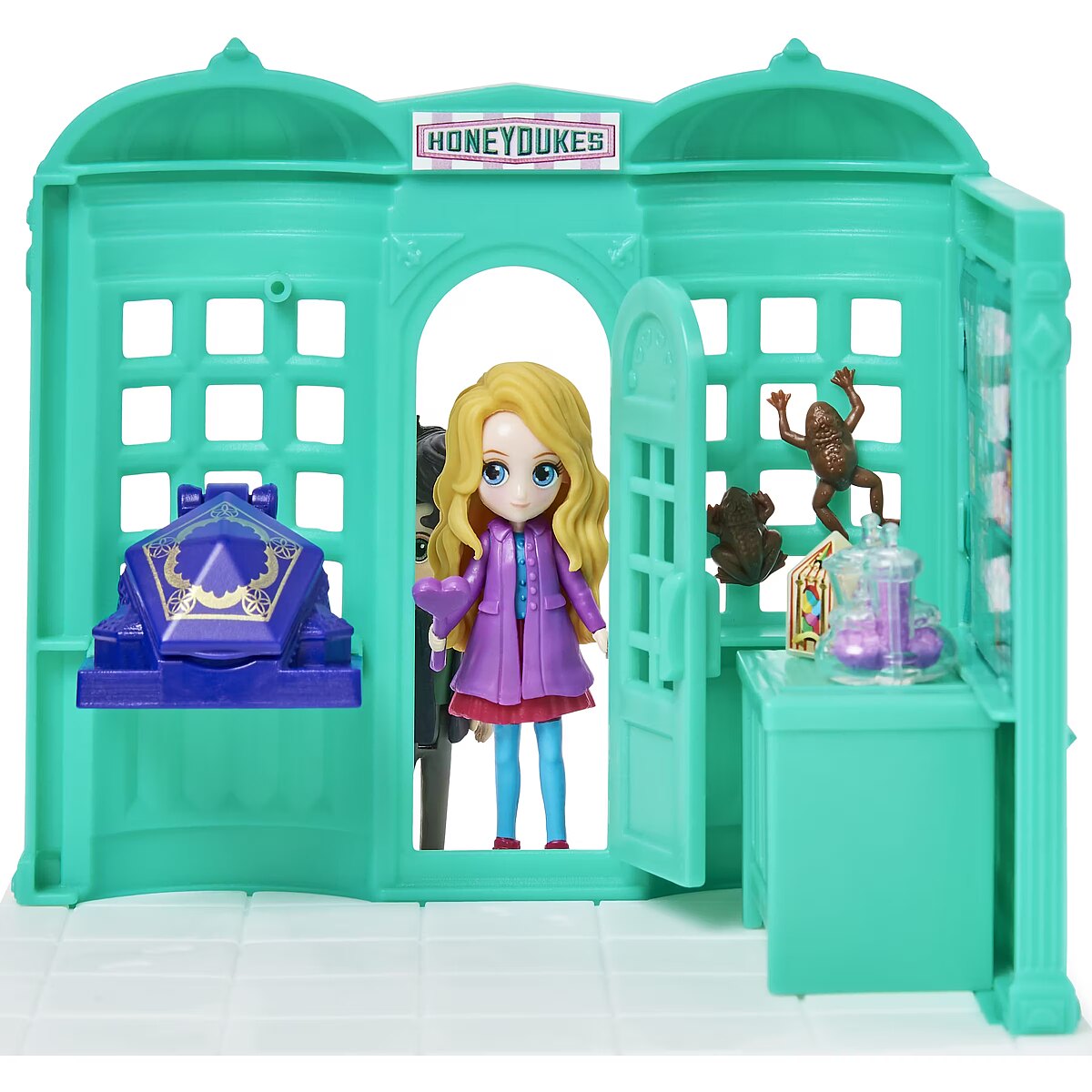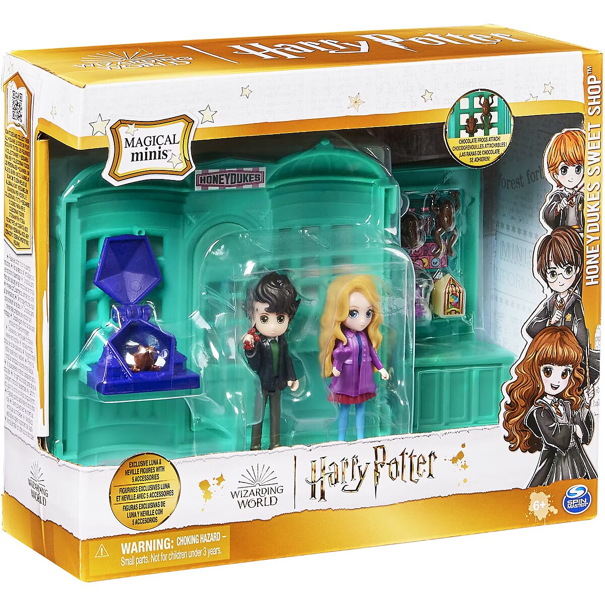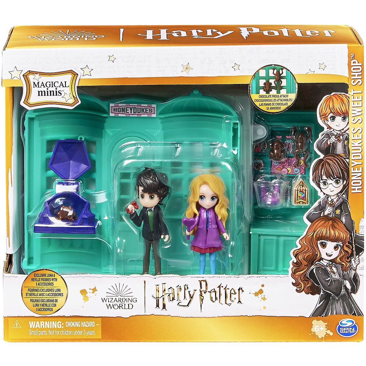 LongDesc - Explore Hogsmeade with the Wizarding World Magical Minis Honeydukes Sweet Shop! Featuring exclusive 3-inch Luna Lovegood and Neville Longbottom dolls and five accessories, young witches, wizards, and Muggles can recreate their favorite Harry Potter scenes. Luna and Neville hold treats from Honeydukes and come in Hogsmeade outfits you won’t find anywhere else! Pose each doll and play out your spellbinding adventures with this fun playset. Attach the two Chocolate Frogs around the playset to mimic them hopping around the shop and open the box on the window ledge to reveal a surprise Chocolate Frog inside! With the playset’s box of Bertie Bott’s Every Flavour Beans and candy jar accessories, Luna and Neville can shop for their favorite sweets and pay at the counter. From the front of the shop, this detailed set looks just like the storefront from the movies and inside, you’ll even find Harry’s footprints on the floor! Honeydukes Sweet Shop will inspire your imagination through fun and exciting pretend play. Scan the QR code on the box to view the collector poster and expand your collection with all of the Magical Minis Harry Potter dolls, Hogwarts Divination Classroom and Three Broomsticks (small dolls and doll playsets each sold separately). Wizarding World Harry Potter toys are must-have gifts for kids who enjoy collectibles, wands, action figures, dolls, and doll accessories. They’re great as a birthday gift, Christmas gift or stocking stuffer. Recreate your favorite scenes from Hogsmeade with the Wizarding World Magical Minis Honeydukes Sweet Shop!Includes: 1 Playset, 2 Figures, 5 Accessories, 1 Set of Labels