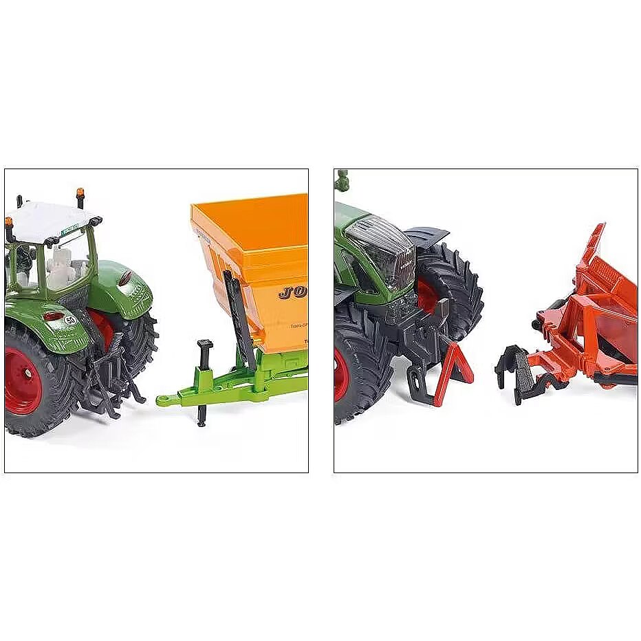 LongDesc - Fendt 724 Vario turpina Fendt visaugstākās veiktspējas un izturīgu vidējās klases traktoru klāstu. SIKU tagad ražo šo labi izstrādāto oriģinālo modeli kā autentisku 1:32 mēroga rotaļlietu modeli. Papildus pārbaudītām funkcijām, piemēram, stūres mehānismam, atveramam motora pārsegam un SIKU sakabes ierīcēm, šis modelis ir aprīkots ar 2 universālām apgaismojuma sistēmām uz kabīnes jumta. Kabīne ir stiklota un noņemama. Priekšējais vējstikls - gluži kā oriģinālam - ir optimāli redzams un izliekas līdz pat jumta galam. Oriģinālie riteņu diski un lauksaimniecības kāpurķēžu riepas papildina šī augstākās klases modeļa izskatu.
