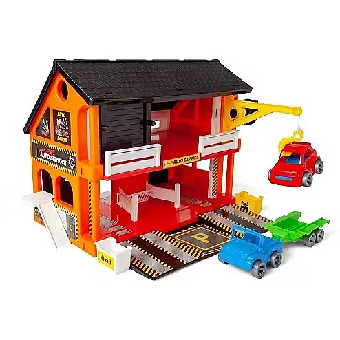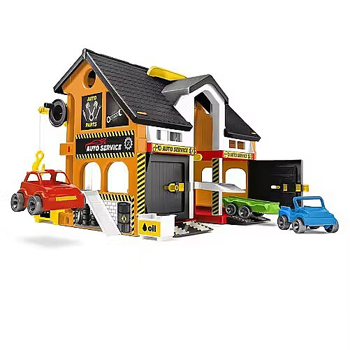 Description - Przenieście warsztat samochodowy do pokoju dziecięcego! Wymiana oleju, pompy, naprawa zawieszenia lub wykonanie przeglądu - wystarczy wjechać, a młody mechanik zajmie się wymagającym reparacji samochodem! Pracownicy warsztatu mają do dyspozycji dwa stanowiska serwisowe, podjazdy, podnośniki, windy - to wszystko sprawia wrażenie prawdziwego serwisu. Zabawki marki Wader z serii Play House przybliżają dzieciom otaczającą rzeczywistość, jak również umożliwiają poznawanie różnych profesji. Play House Auto Serwis jest dwupiętrowym domkiem z wieloma ruchomymi elementami takimi jak otwierane drzwi, winda i dźwig do podnoszenia pojazdów. W zestawie znajdują się również 2 samochody, 1 przyczepa, 2 kontenery na olei i zużyte części samochodowe, podjazdy oraz zestaw 34 naklejek do samodzielnego przyklejenia. Zabawa tym produktem zaczyna się już od chwili montowania elementów serwisu, jest to zadanie ciekawe i wciągające, jak również mające wpływ na rozwój dziecka i zdolność logicznego myślenia. Zarówno w trakcie montażu oraz samej zabawy w warsztat rozwija się wyobraźnia malucha i jego inteligencja wizualno-przestrzenna. Kluczowy jest również rozwój funkcji psychomotorycznych i zdolności manualnych. Wszystkie elementy zabawki zostały wykonane z bezpiecznych i wytrzymałych materiałów; ponadto produkt nie posiada ostrych krawędzi i kantów. Elementy domku łączą się ze sobą w prosty i trwały sposób, co daje gwarancję, że nic nie przeszkodzi dziecku w trakcie doskonałej zabawy. Dzięki uchwytowi zamocowanemu na dachu, zabawkę można bez kłopotu przenosić w dowolne miejsce. Piętrowy dom - warsztat o wymiarach 37 cm x 30 cm x 38 cm W skład zestawu wchodzi domek - warsztat z otwieranymi drzwiami, winda i dźwig do podnoszenia pojazdów, 2 samochody, 1 przyczepa, 2 kontenery na olei i zużyte części, podjazdy, zestaw 34 naklejek Uchwyt na dachu daje możliwość swobodnego przenoszenia domku w dowolne miejsce Wszystkie elementy są bezpieczne dla dzieci, wykonane z wytrzymałych materiałów Zestaw doskonały do zabawy kilku osób równocześnie: dzieci z dorosłymi czy rówieśników; atrakcyjny również do samodzielnej zabawy Zabawa produktem pobudza wyobraźnię i kreatywność dziecka, sprzyja rozwojowi funkcji psychomotorycznych oraz rozwija jego zdolności manualnych Przeznaczony dla dzieci 3+