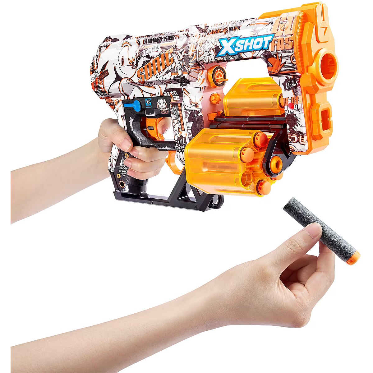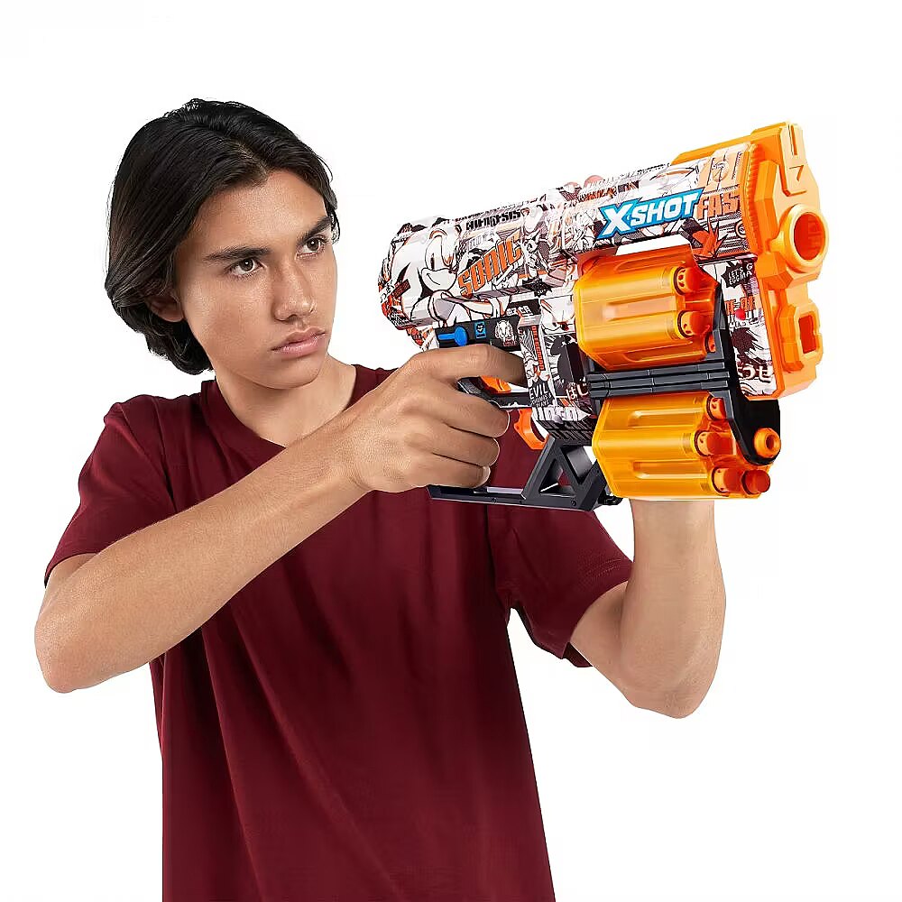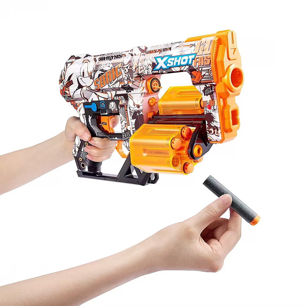 Description - Skins Dread Sonic launcher 12 arrows X -Shot Skins Dreada - Sonic the Hedgehog launcher - is a unique variant of the skin launcher (color variant) of Sonic! Thanks to the capacity of 12 arrows of the X-Shot Skins Dread with double eardrified magazines, you will be your best partner in the fight against the enemy! When you run out of the arrows in one drum, switch to the other and shoot even from a distance of up to 27 m. Power on all 6 skins Sonic The Hedgehog. Will you manage to get the X-Lendarian skin? A chance to find it is only 1 in 1000! Choose your skin (color variant): Join the battle with the Sonic the Hedgehog, Tails and Knuckles pop culture icon thanks to the X-Shot Sonic skin.