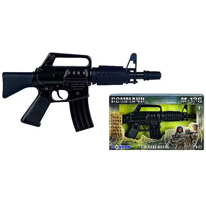 Security - For use under direct adult supervision. No caps required. Remove fasteners before giving the toy to children. This model complies with current safety regulations. GONHER S.A. assumes no responsibility for the conduct of users or for the consequences resulting therefrom. Retain the address. Manufactured in Spain.